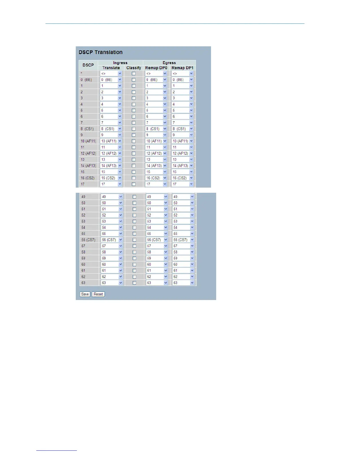 Translate: DSCP at Ingress side can be translated to any of (0-63) DSCP values.