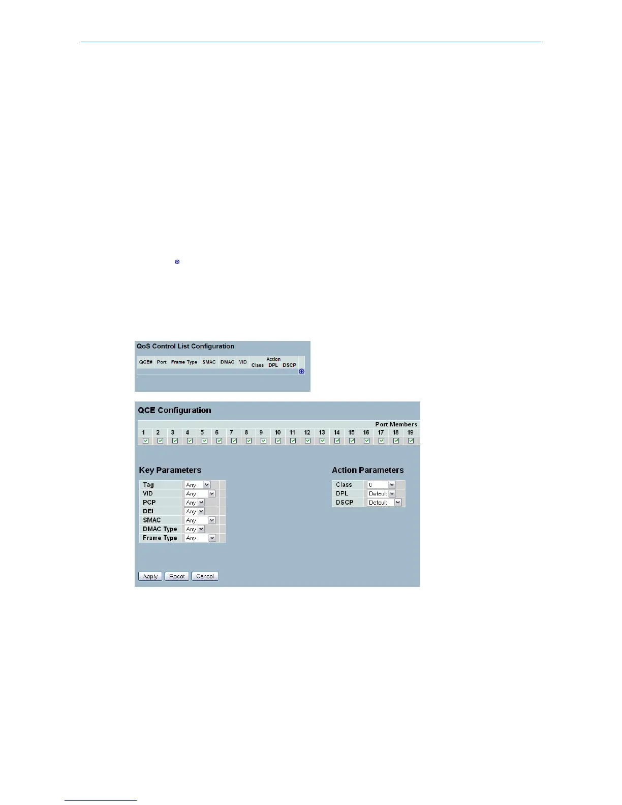 The maximum number of QCEs is 256 on each switch. Click on the lowest plus sign to add a new QCE to the list.