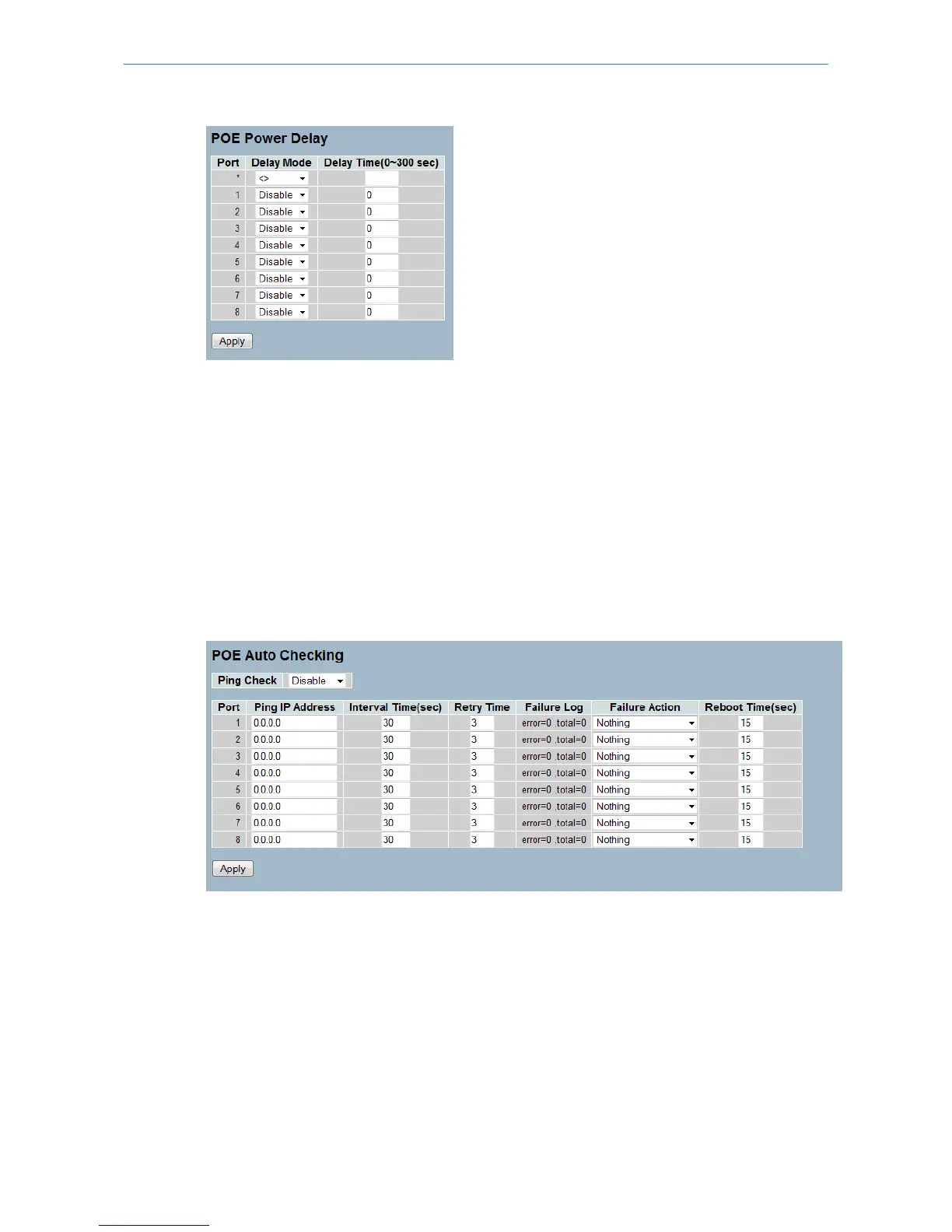 Ping Check: Enable the ping check function to detect the connection between PoE port and powered device.