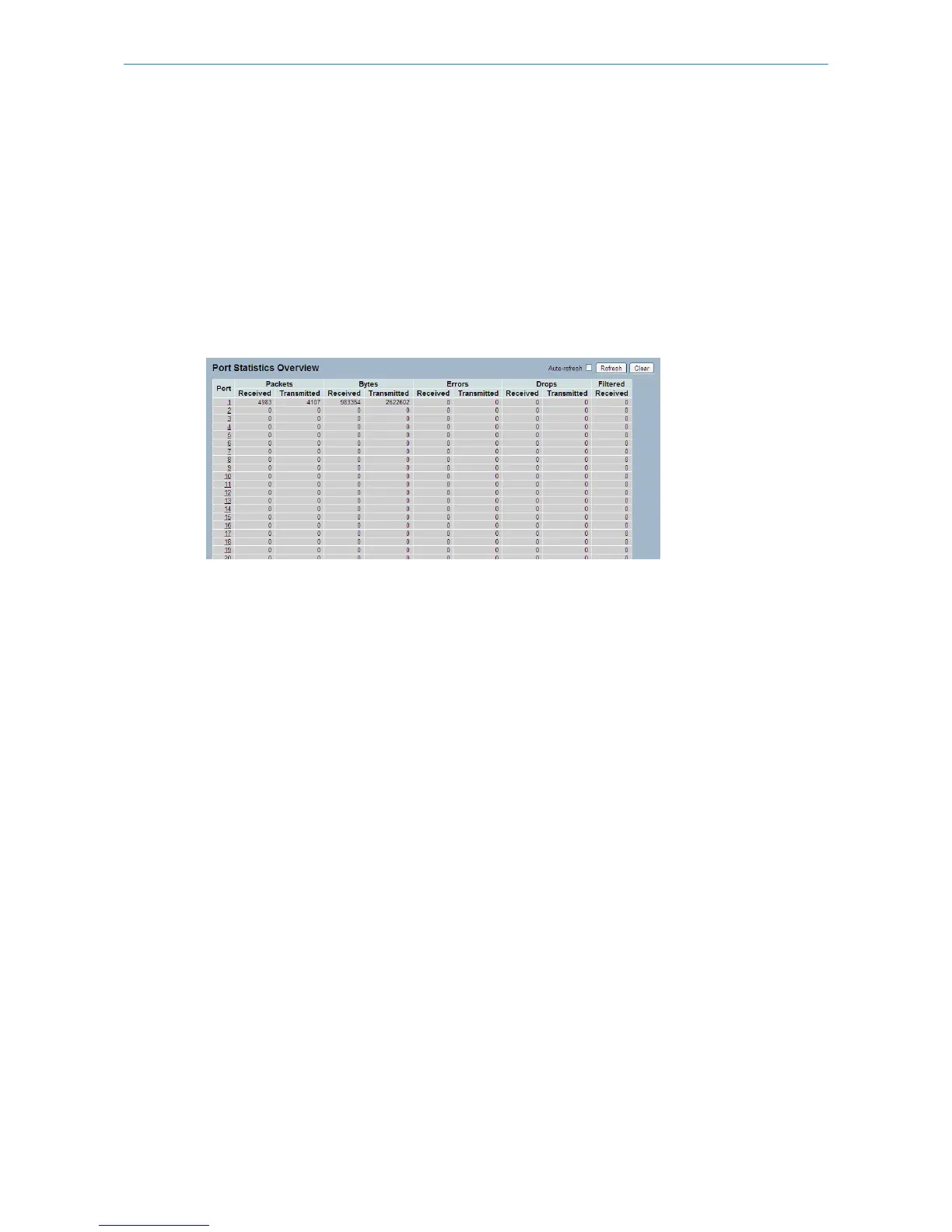 3. Click "Refresh" to refresh the port statistics or click "Clear" to clear all information.