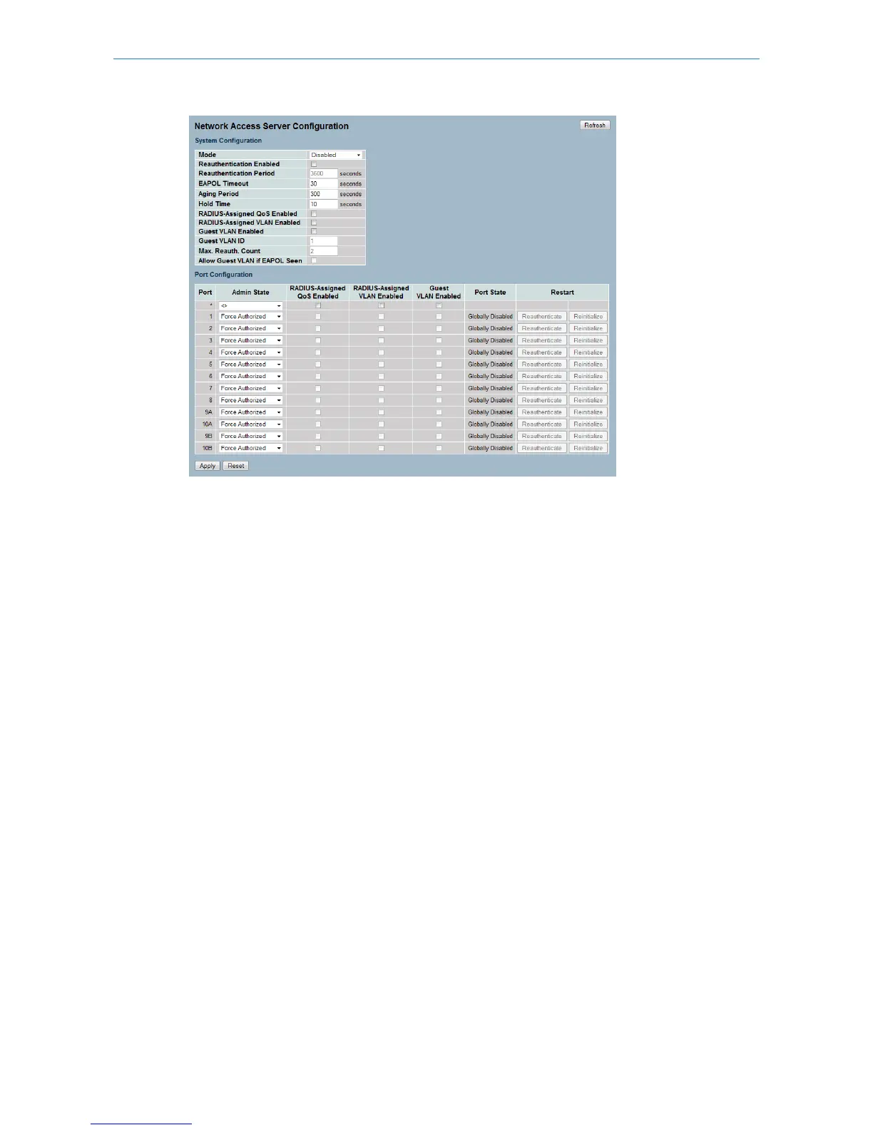 Indicates if NAS is globally enabled or disabled on the switch. If globally disabled, all ports are allowed forwarding of