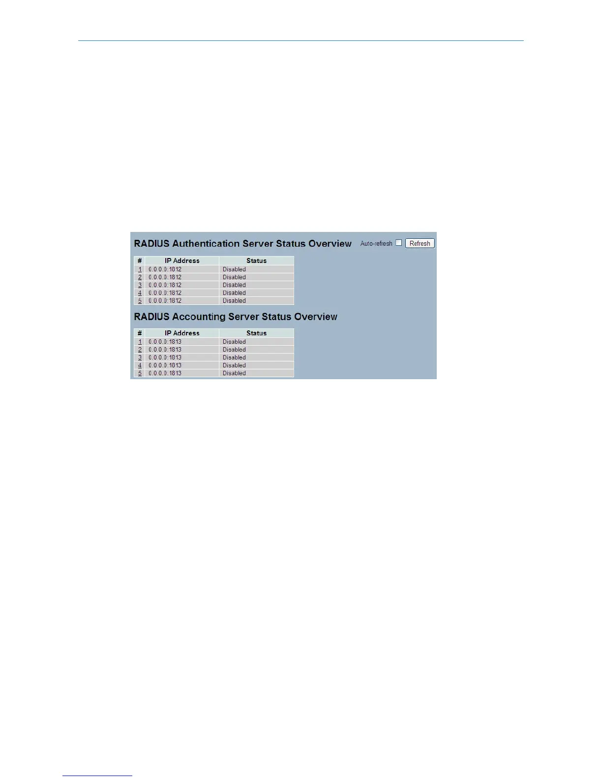 Figure 5-6.2: The RADIUS Authentication Server Status Overview