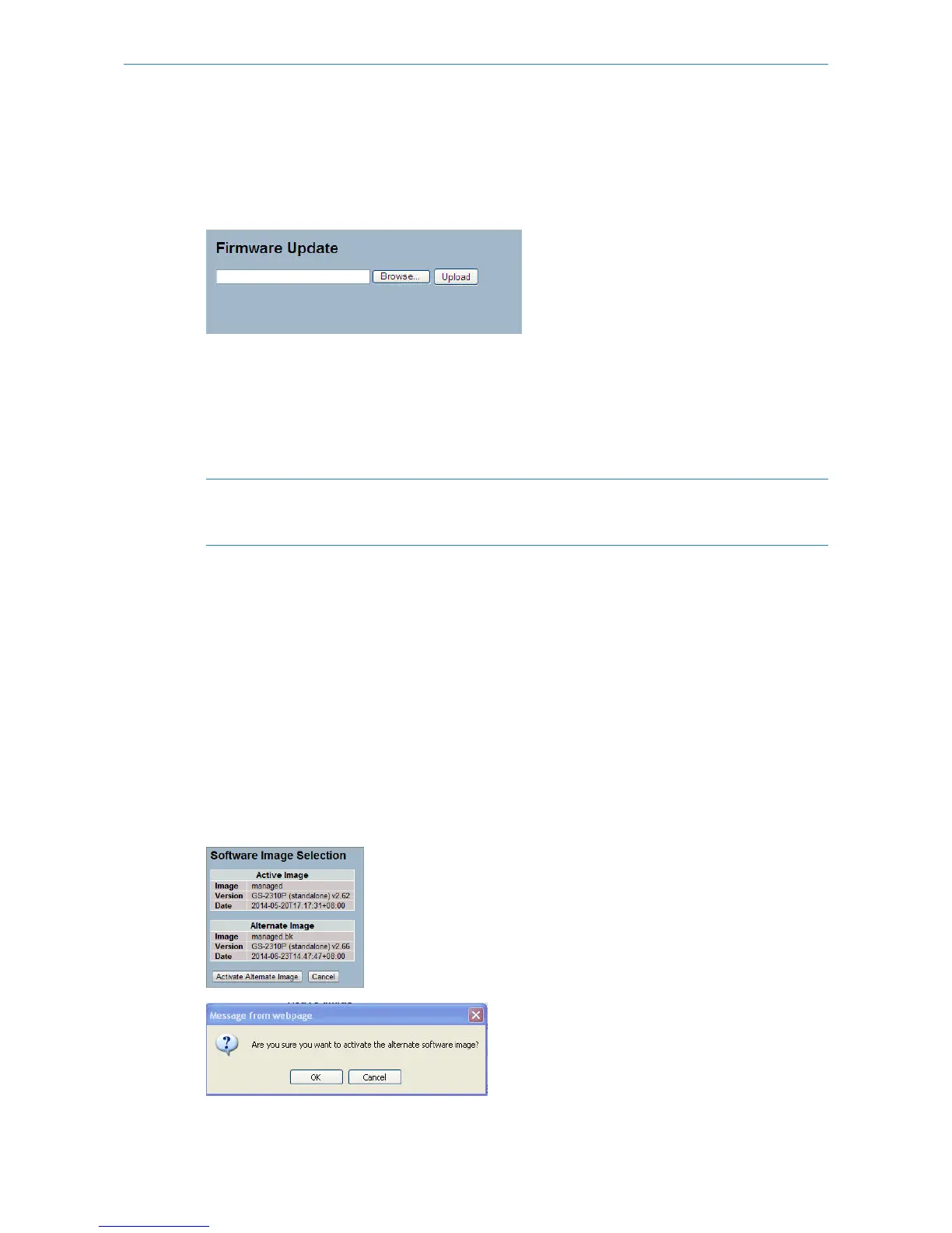 switches according to the software image. After the software image is uploaded, a page announces that the
