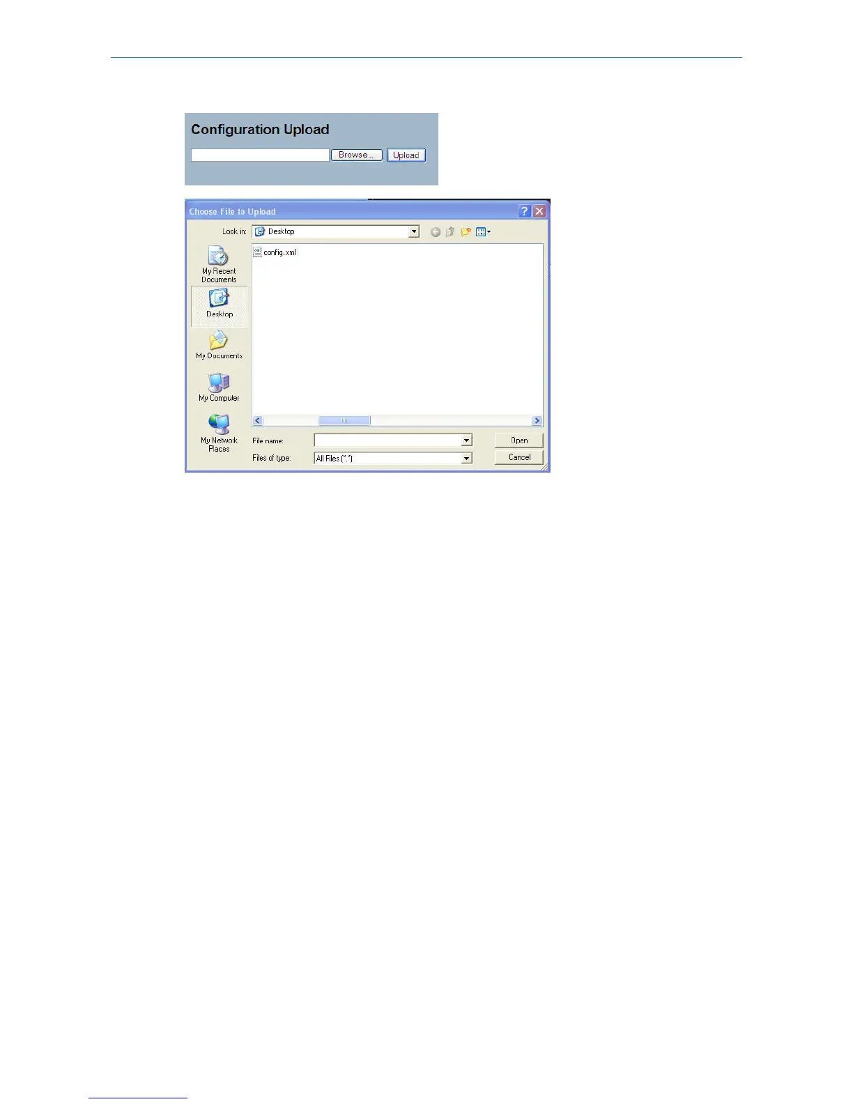 Click to upload the configuration from the specified location.
