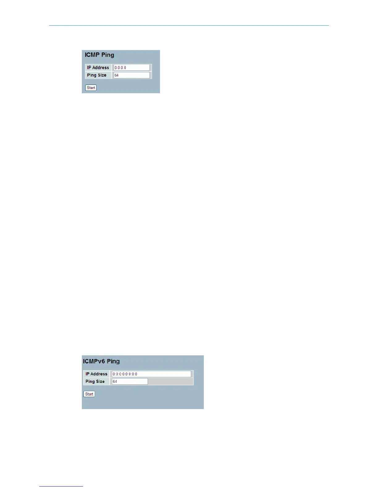 This section allows you to issue ICMPv6 PING packets to troubleshoot IPv6 connectivity issues.