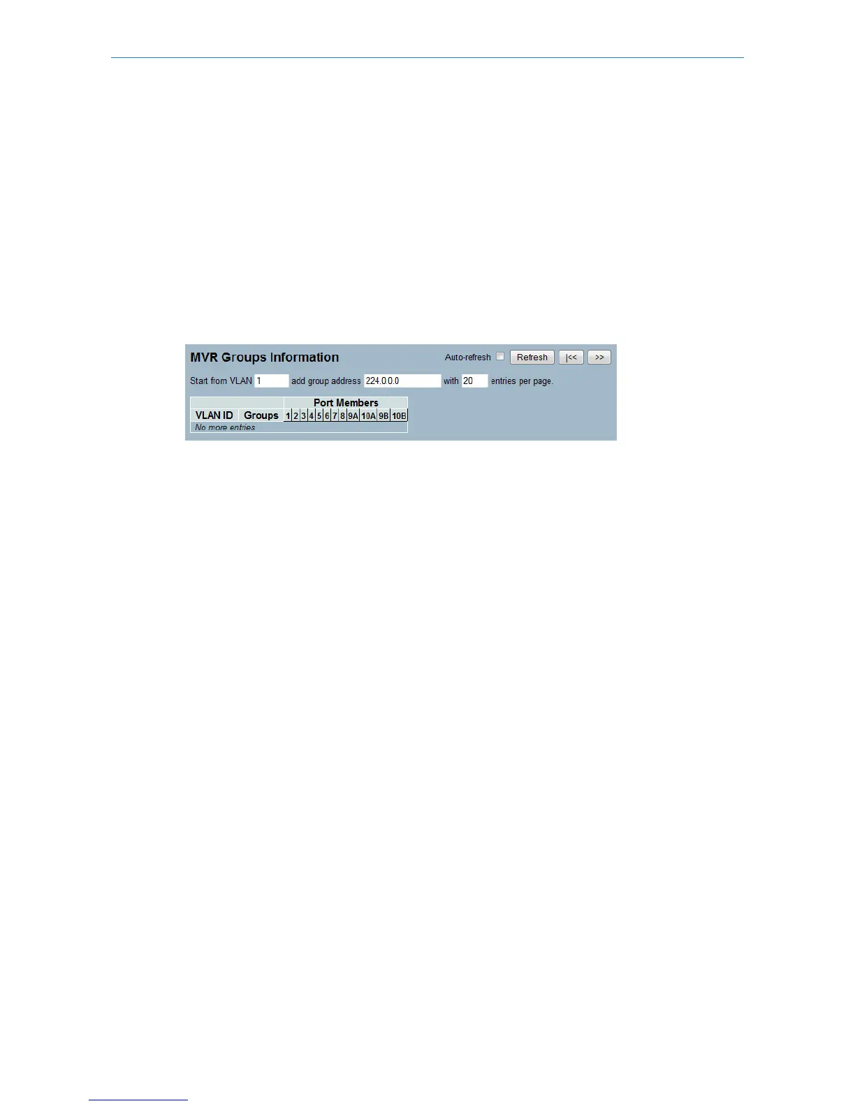 This section describes how to display the MVR Groups information. Entries in the MVR Group Table are shown on this