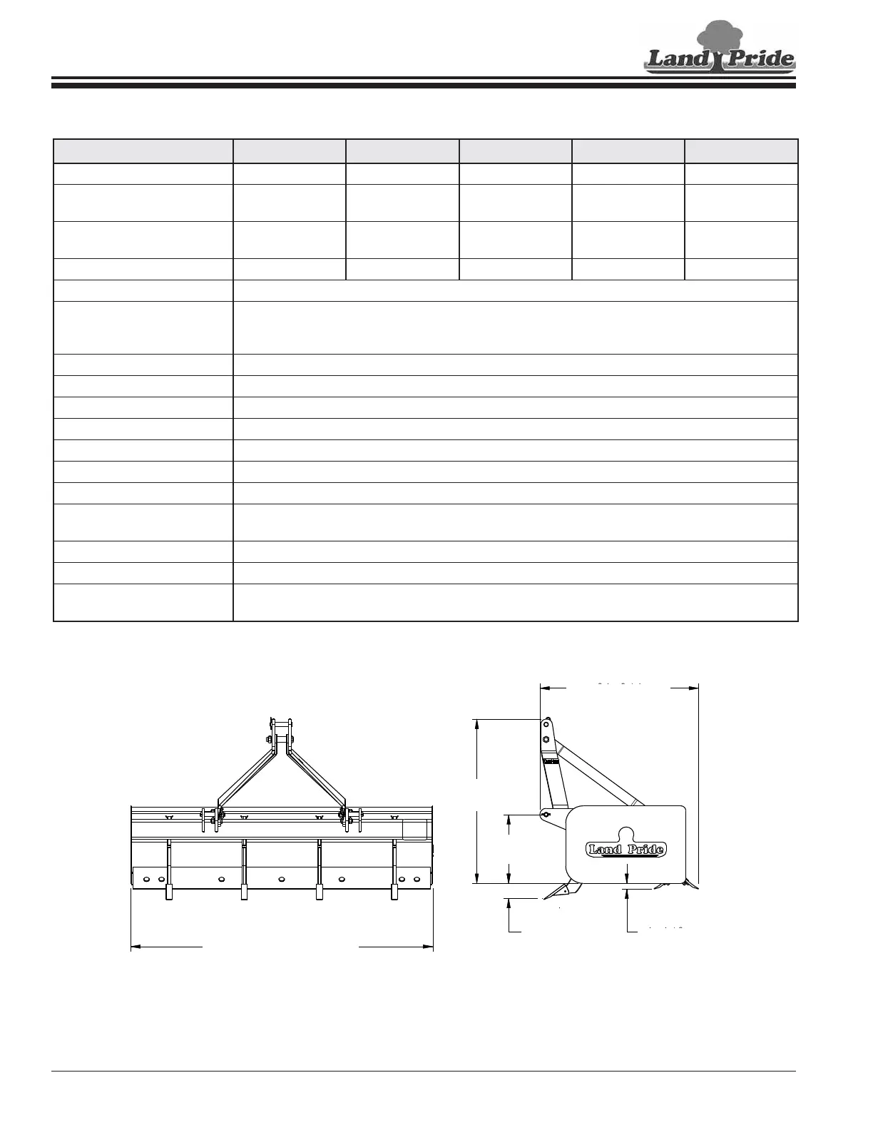 Working Width 48" (1.22 m) 54" (1.37 m) 60" (1.52 m) 66" (1.68 m) 72" (1.83 m)