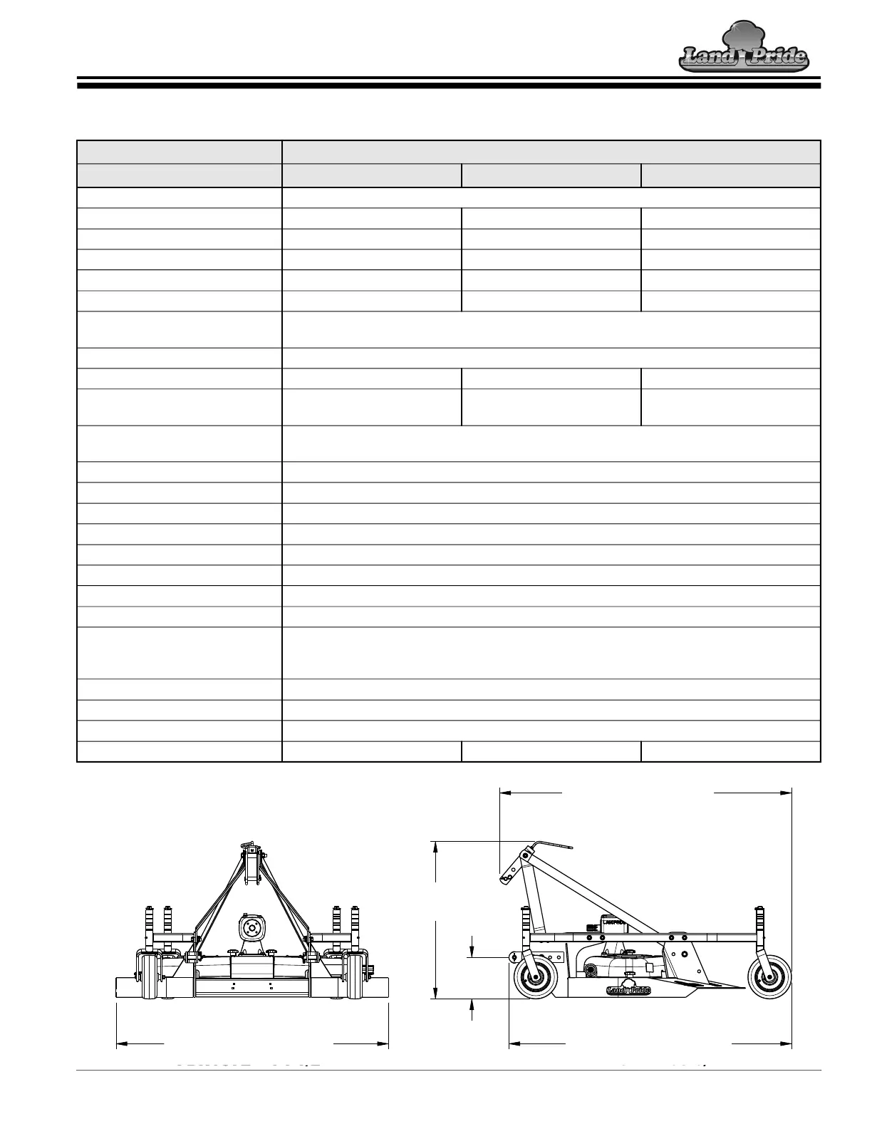 Cutting Width 48" (1.22m) 60" (1.52m) 72" (1.83m)