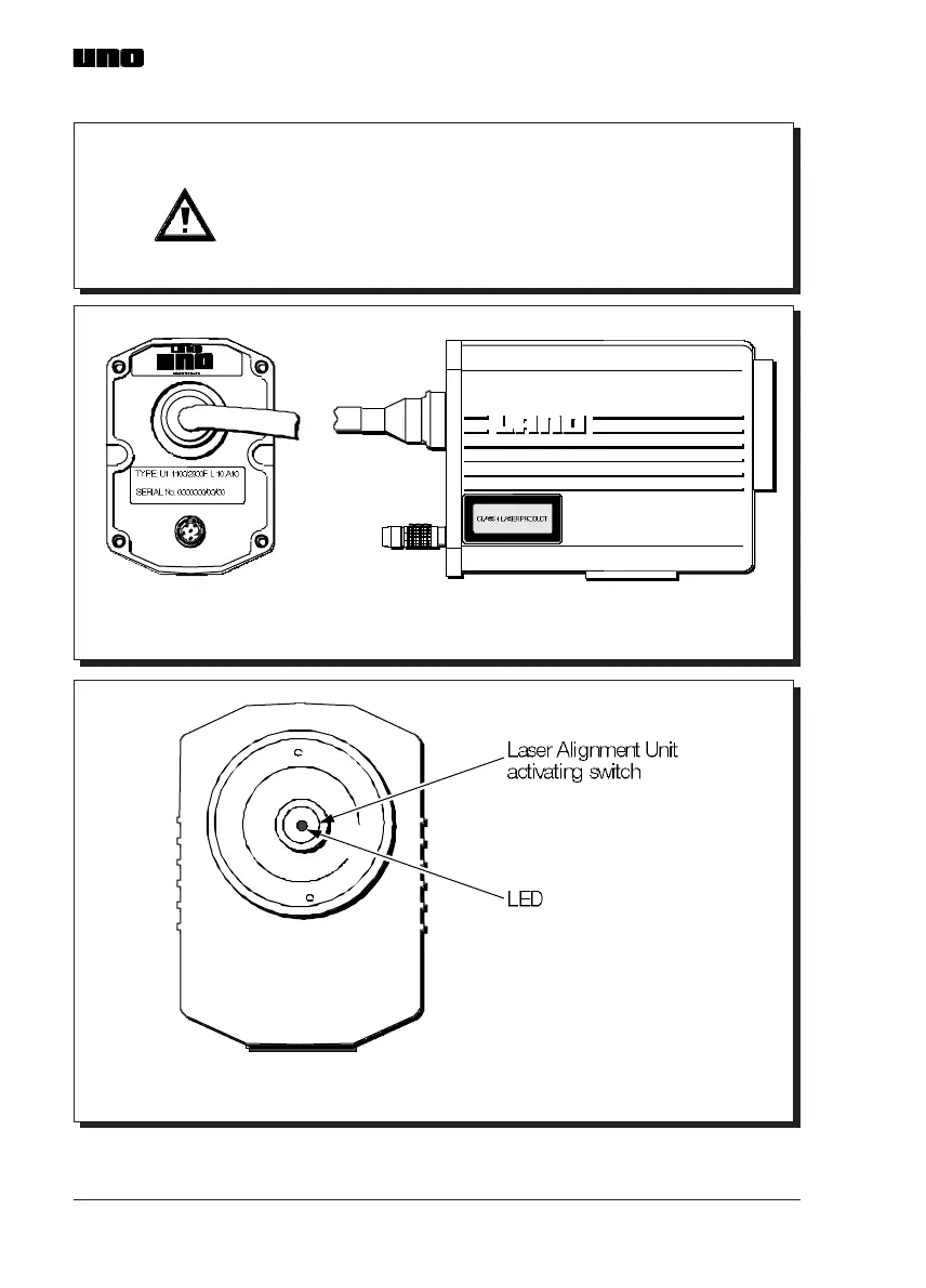 Fig. 19 Location of the Laser Alignment Unit activating switch and LED