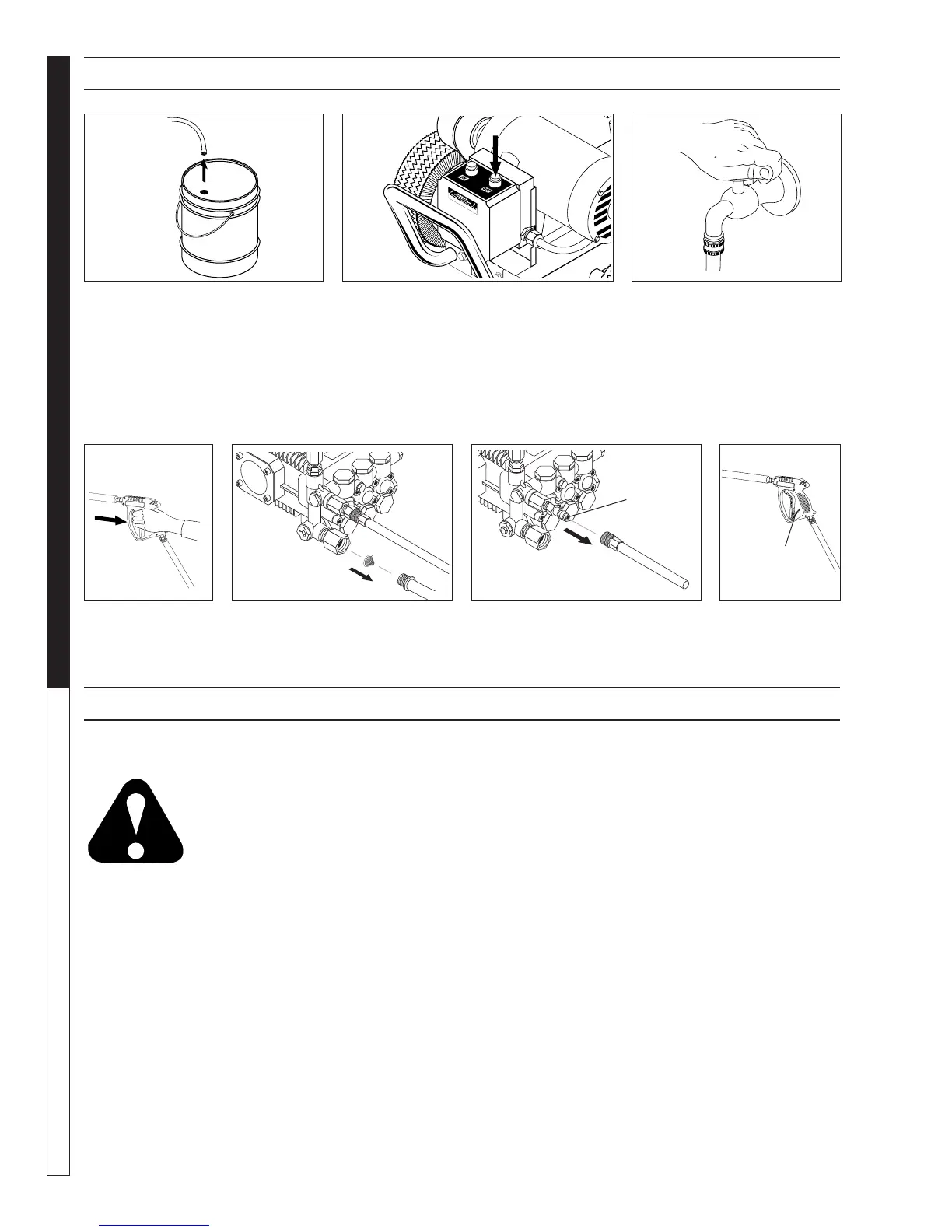 2. Restart pressure washer and let it run briefl y (about