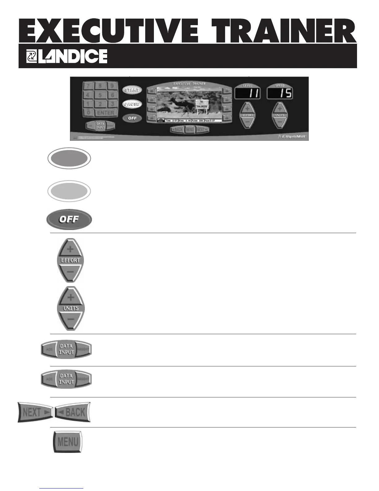 Pressing OFF will shut down the elliptical. All current statistical information will be cleared.