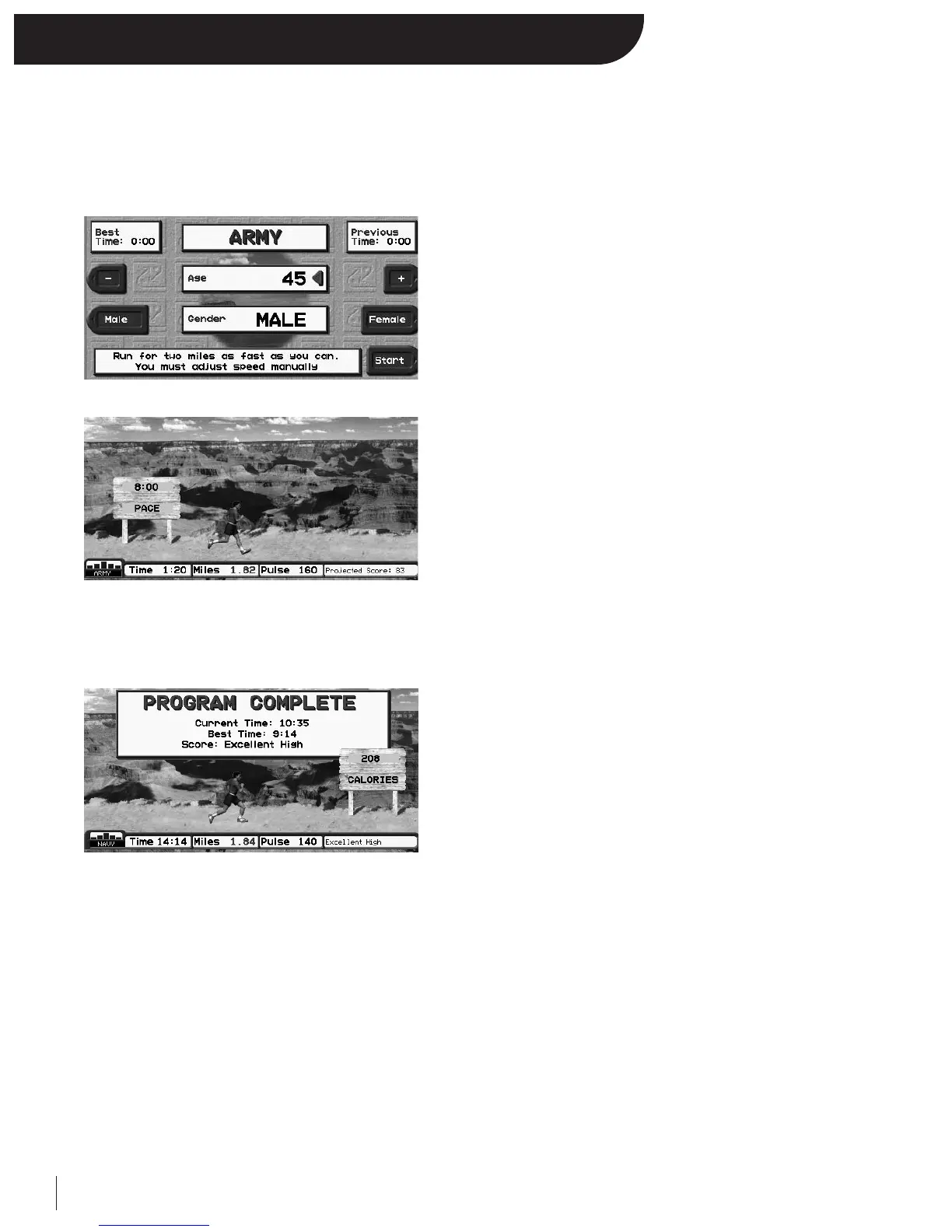 prompted to the fitness test set up screen. Use the designated “+/-”