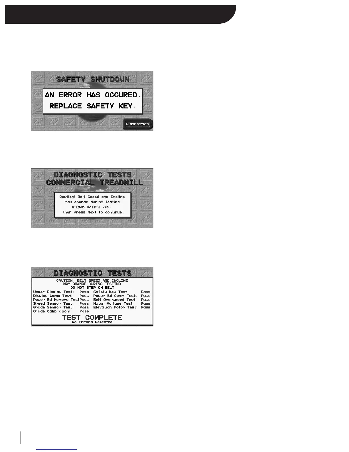 the treadmill will display the error message and the option to further investigate by commencing the treadmill’s self-