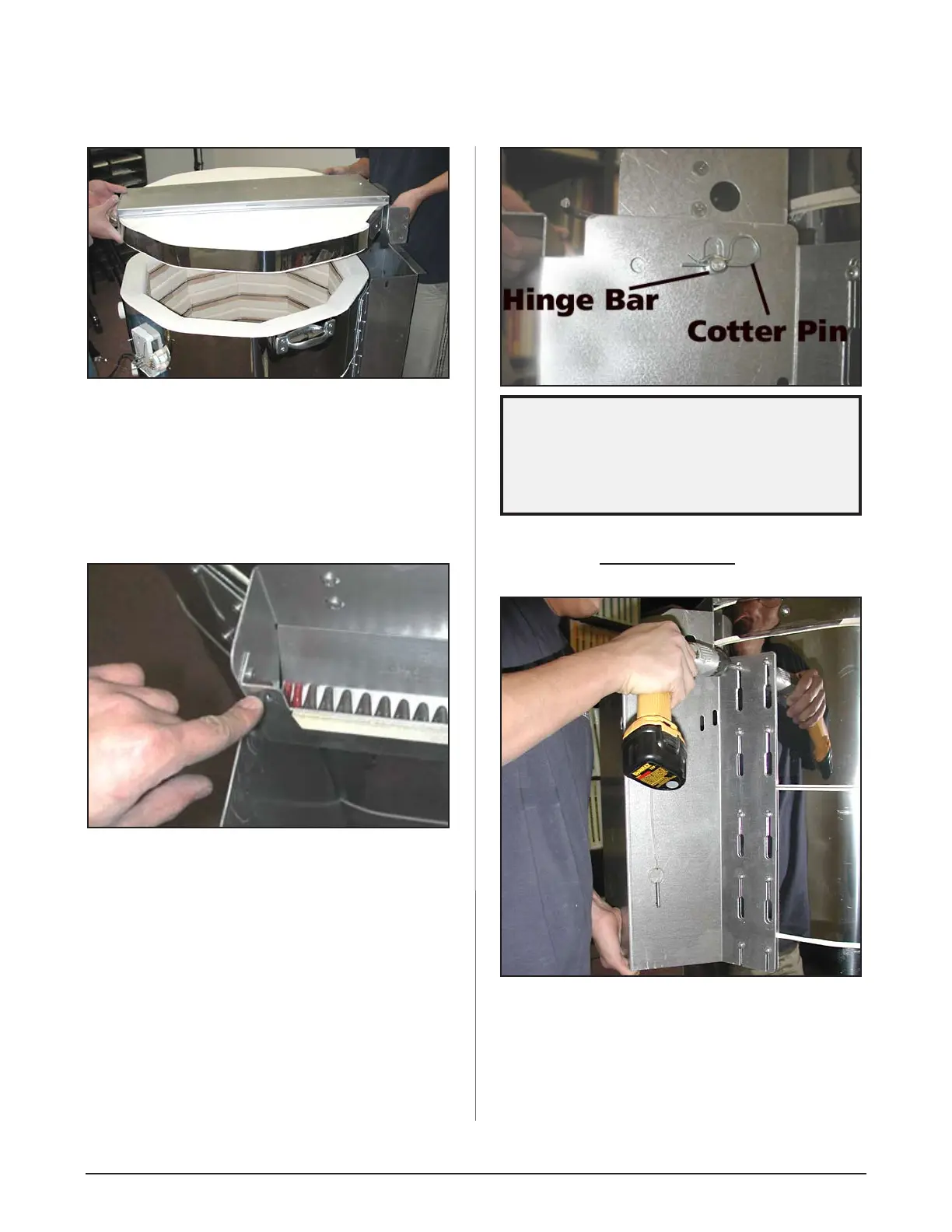 hinge piece. Insert the cotter pins into the holes in
