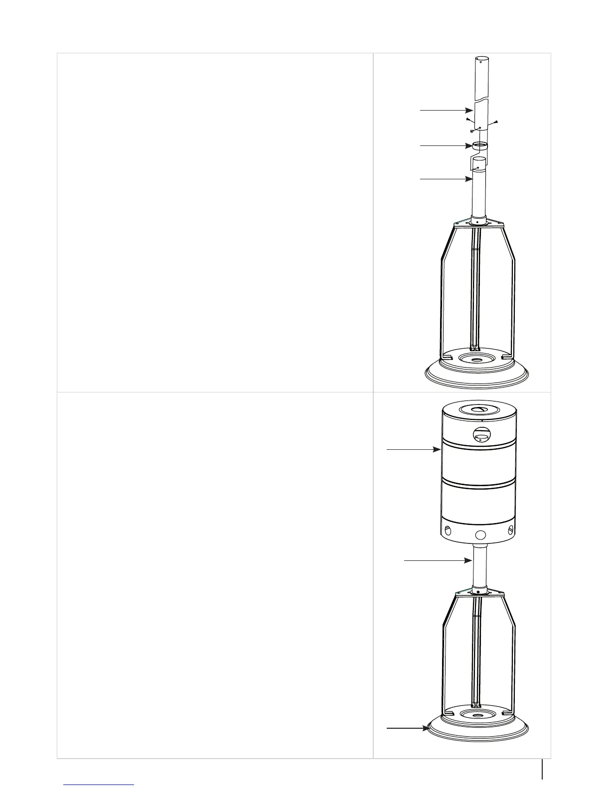4. Place the connecting ring (6) onto the lower column (long)