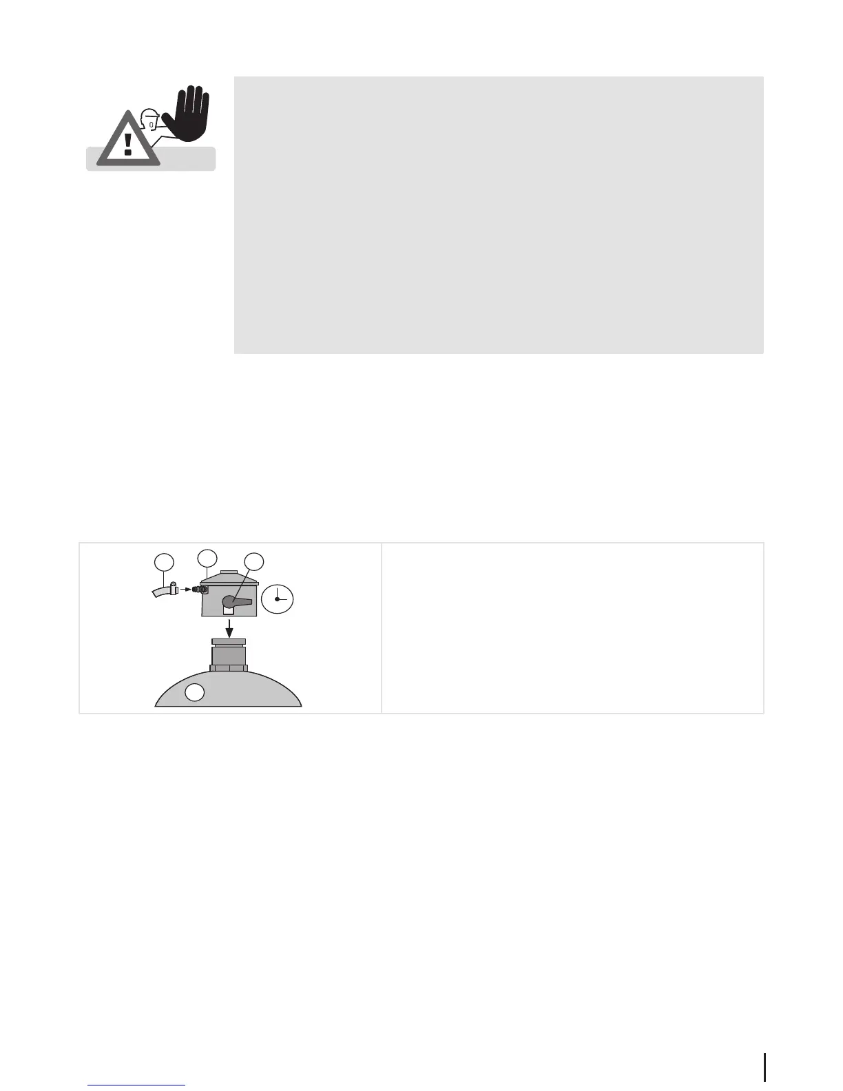 • When connecting the gas cylinder ensure that there are no sources of ignition within a