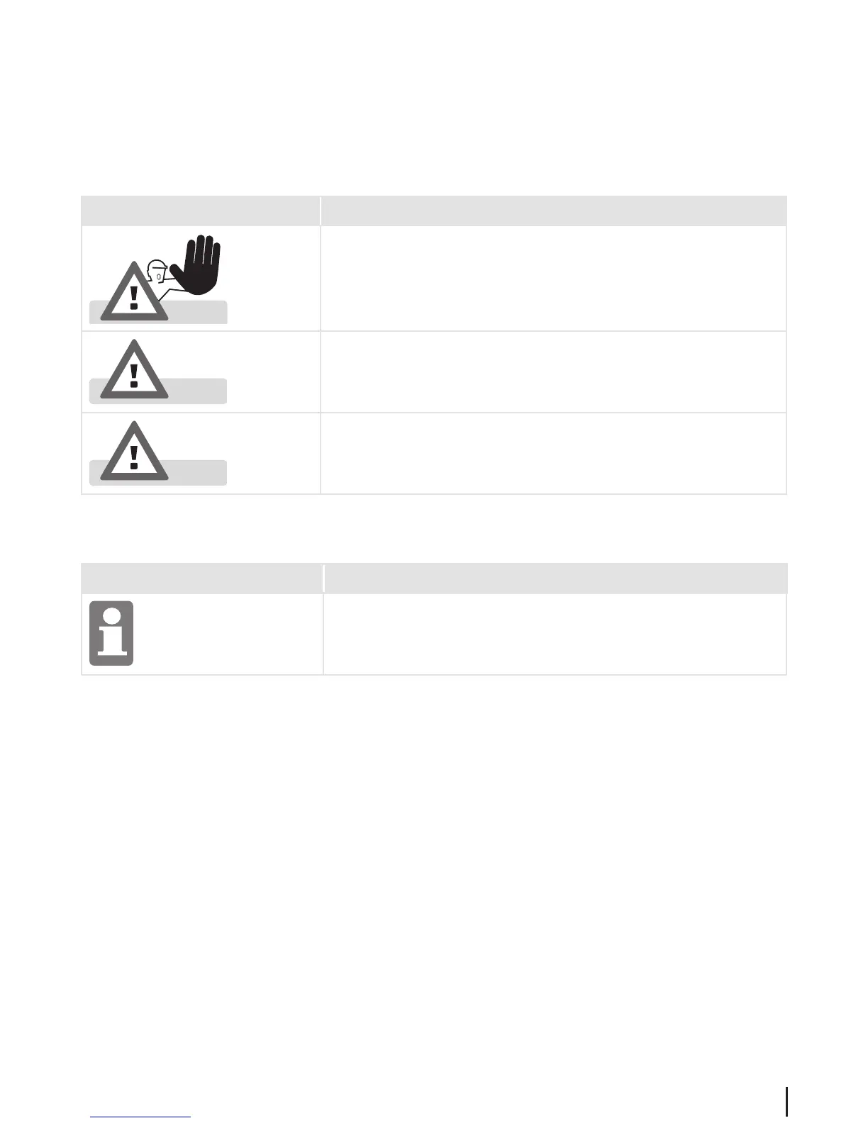 The following pictograms and signal words are used in these instructions to point out hazards and important information.