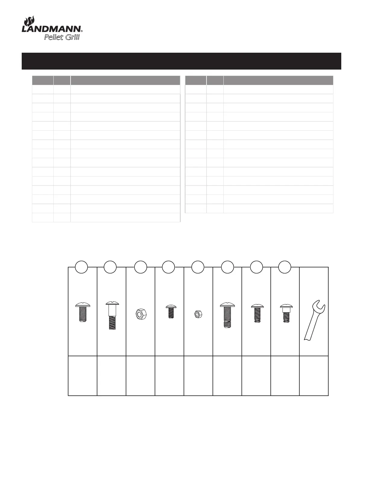 Landmann 470430 - Pellet Grill Parts and Hardware; Hardware and Small Parts List