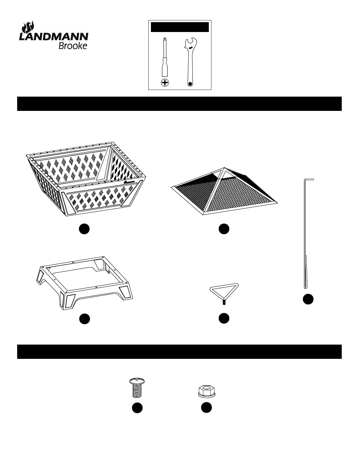 Landmann Brooke - Assembly Preparation and Parts; Required Tools for Assembly; Component and Hardware Identification