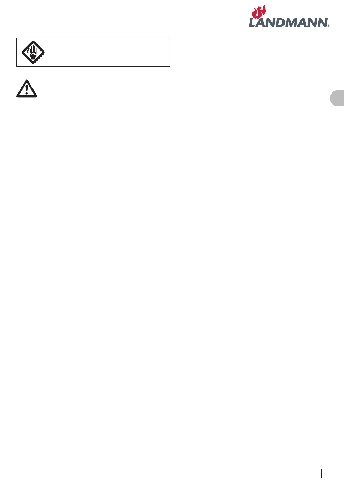 • Ikke bruk grillen med en temperaturkontroller, varmebatteri som har en skadet kabel eller plugg. Kontakt Landmann for å få en ny