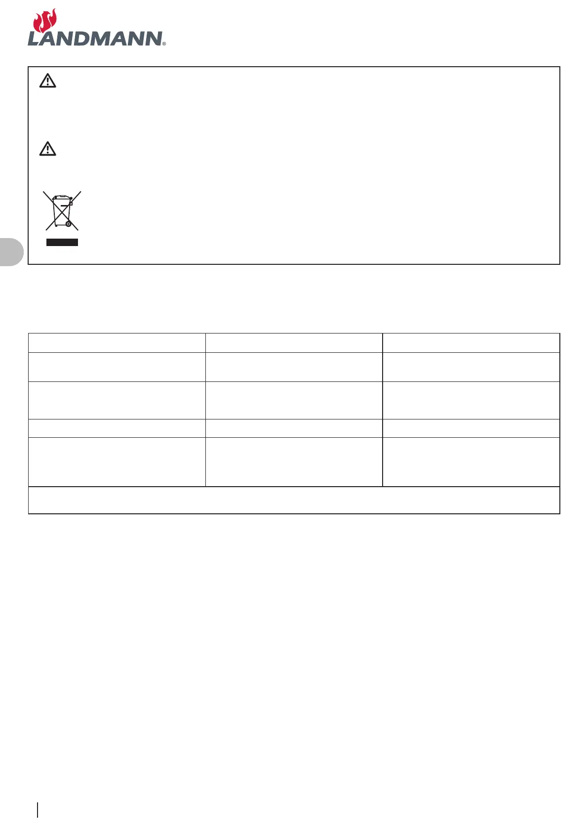 klienta Landmann. Nieprzestrzeganie tego ostrzeżenia może skutkować pożarem lub wybuchem,