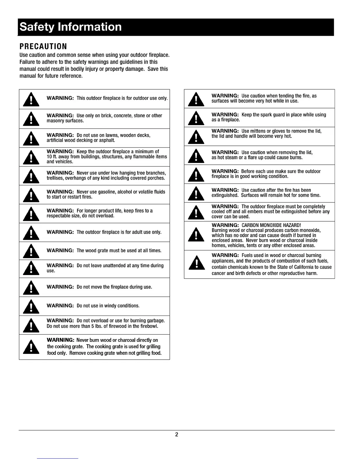 Landmann Heatwave 28051 - Safety Information; PRECAUTION