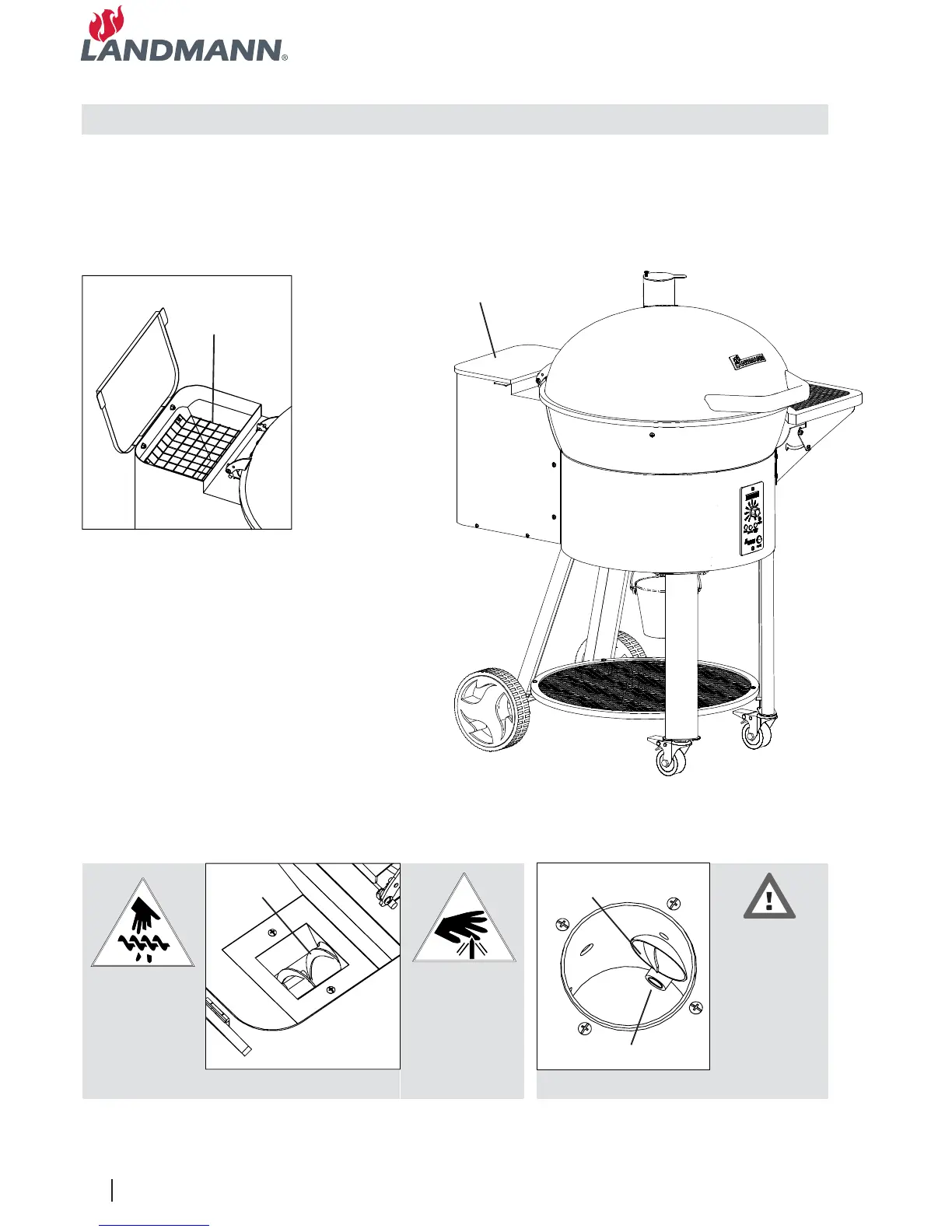 Inside the grill and hopper, there are moving parts and hot parts that the grill user must be