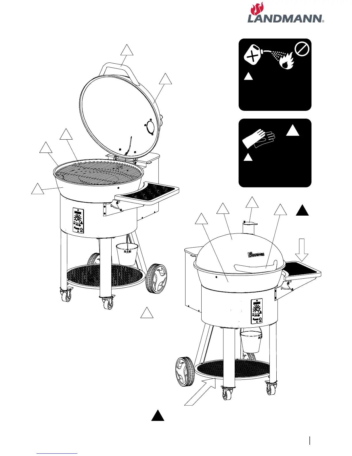Landmann Pellet Kettle - Important Safety Warnings; Flammable Liquids Warning; Hot Surface Precautions; Storage Shelf Limitations