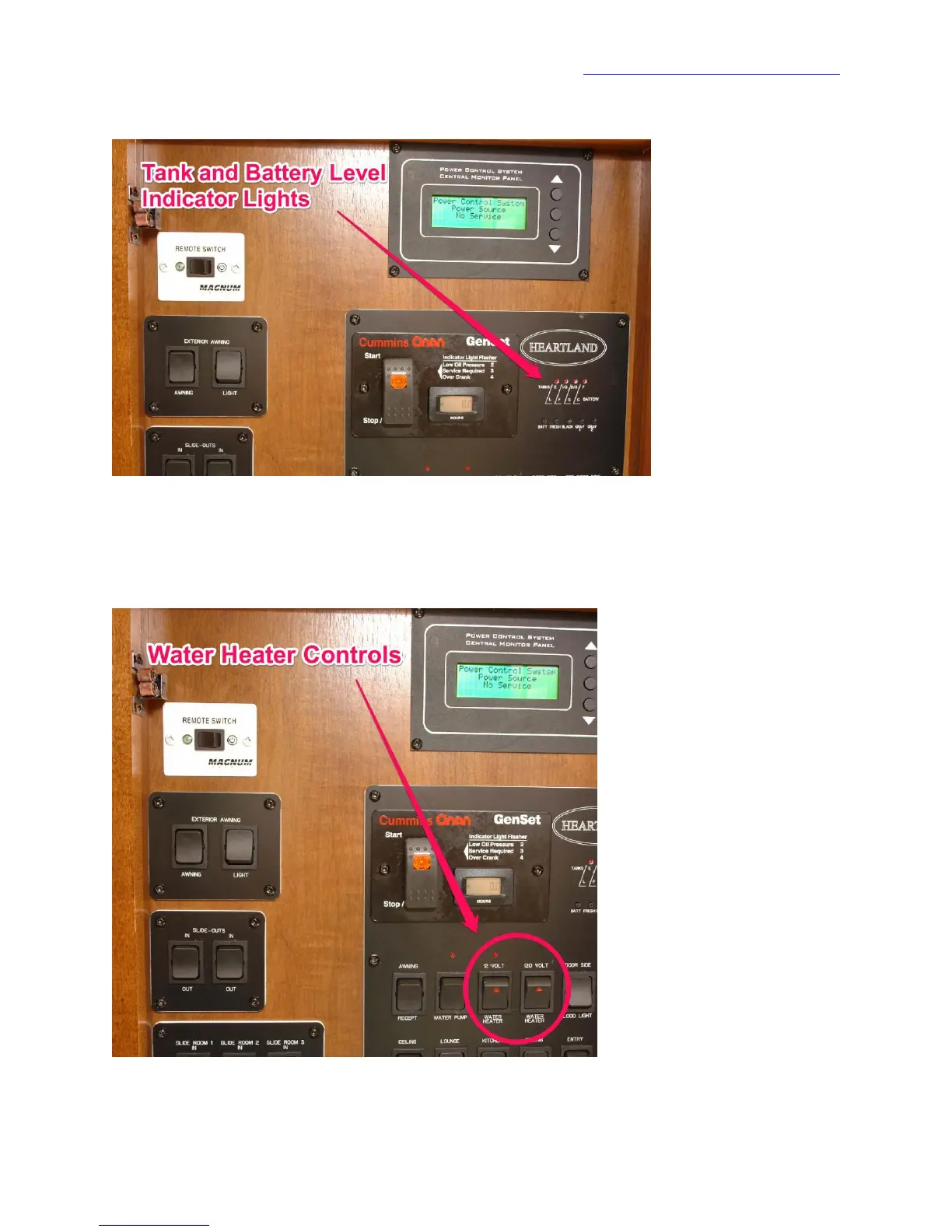 holding tank and the approximate voltage level of the 12V DC power system. The Gauges give a very