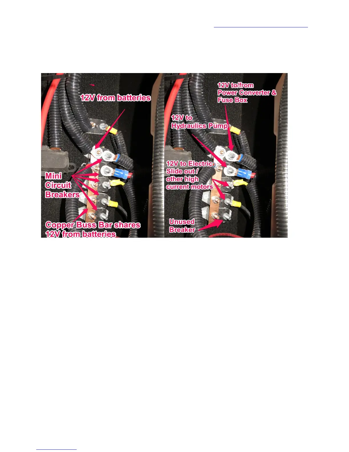 Notice that power comes in on the heavy red wire attached on the top left of the buss bar. Each of the
