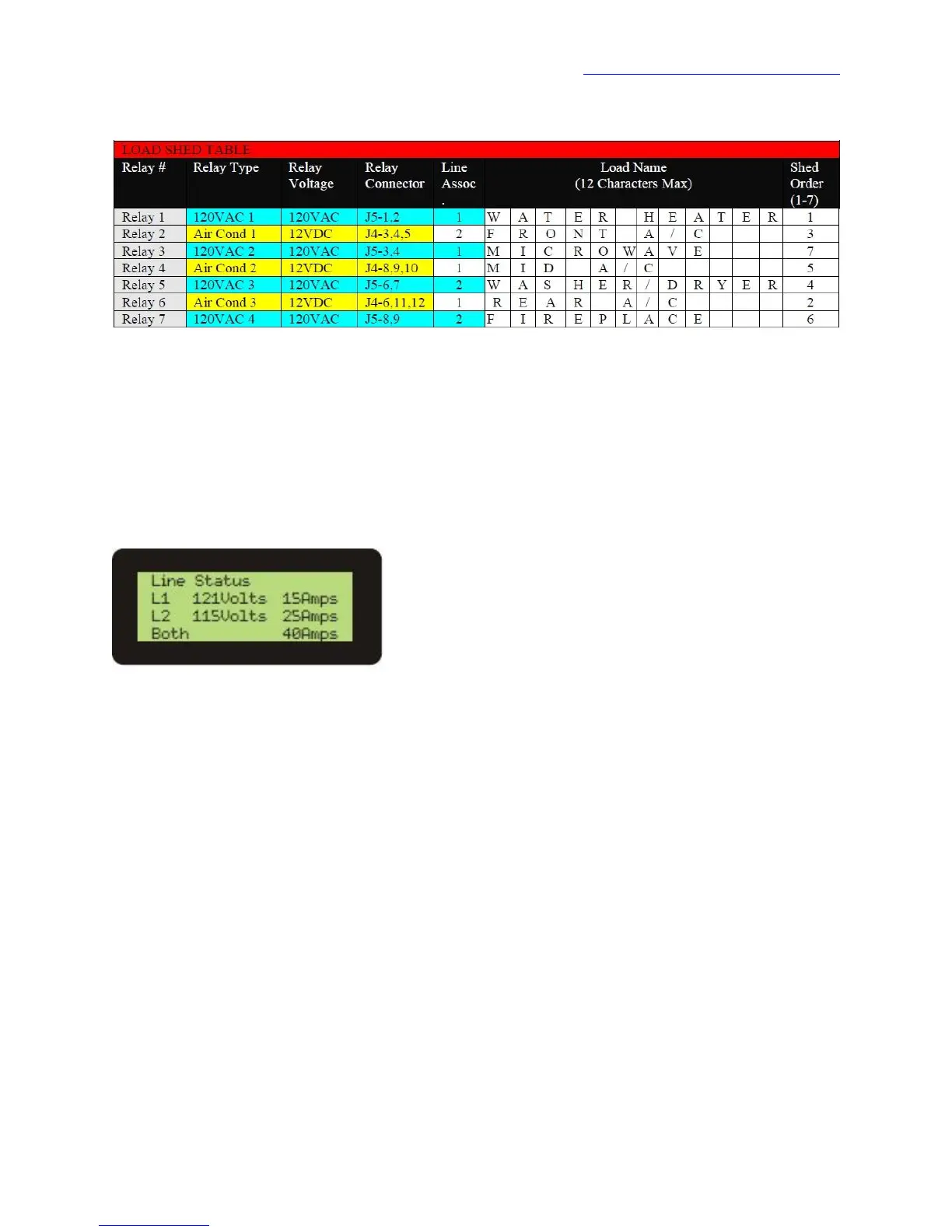 associated with. The right-most column shows the order in which loads are shed. Water Heater is shed