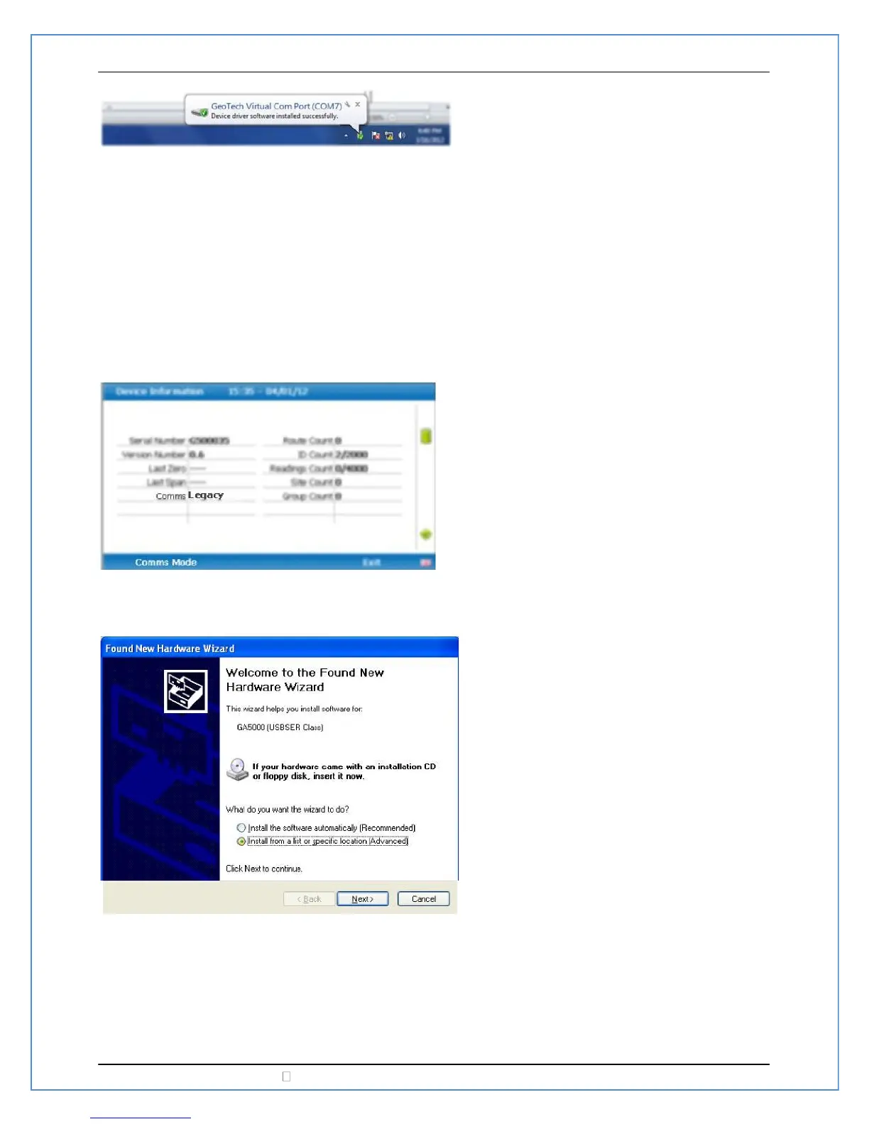 Plug the USB cable into the instrument and computer. The “Found new hardware” wizard should open.
