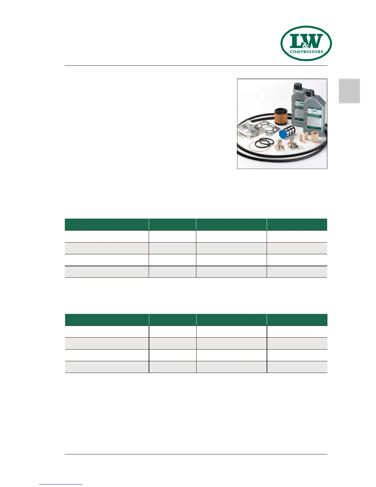 Inlet Filter, V-Belts, Silencers, In-&Outlet Valve, Valve Seals