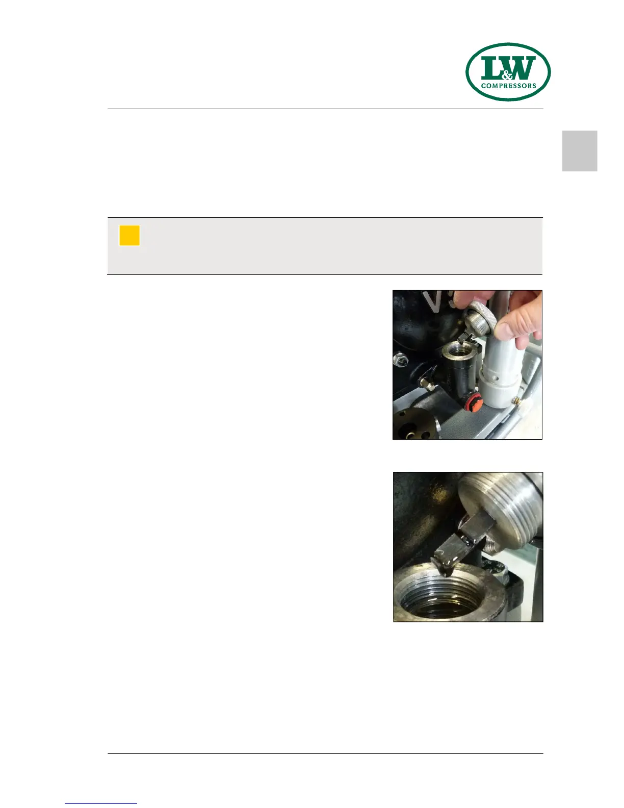 Check oil level daily. Never start the compressor with a too low oil level. Risk of accidental