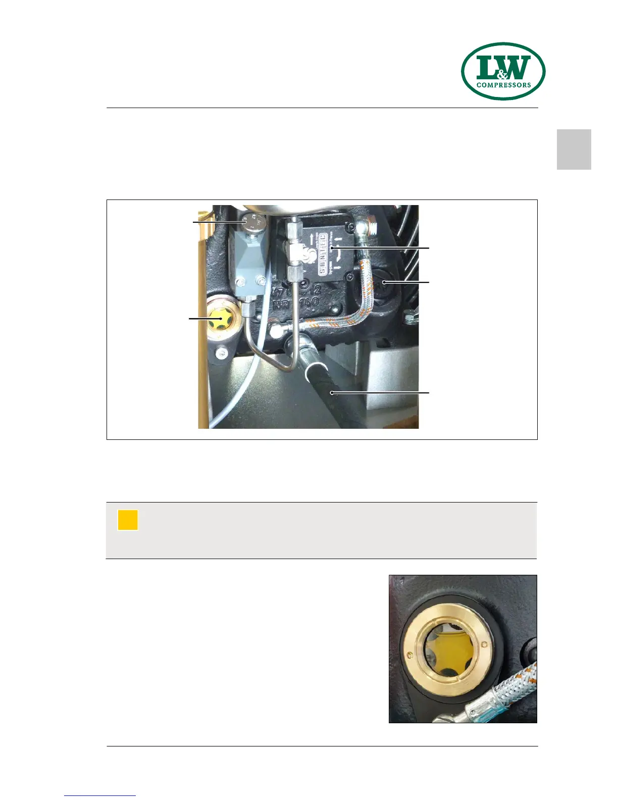 the oil sight glass. Never start the compressor with a too low