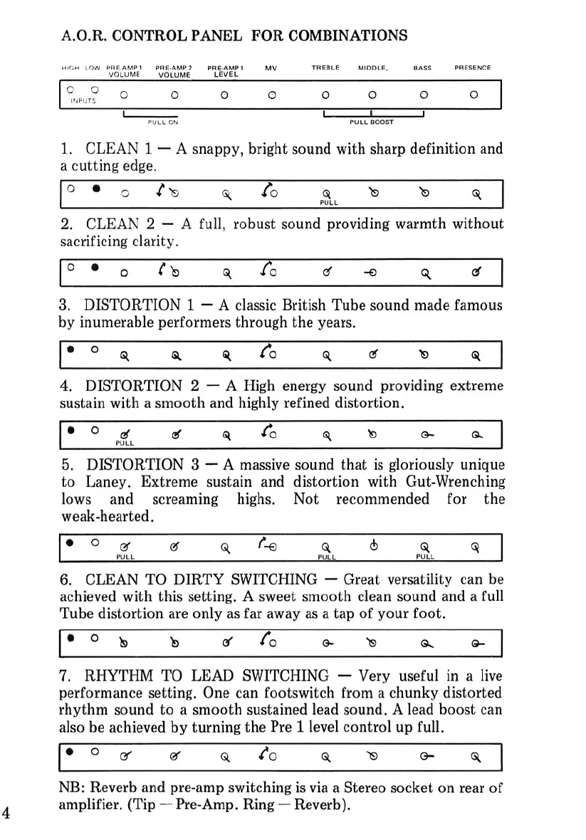 Laney A.O.R. - AOR Amplifier Combination Control Panel Settings; Combination Sound Settings