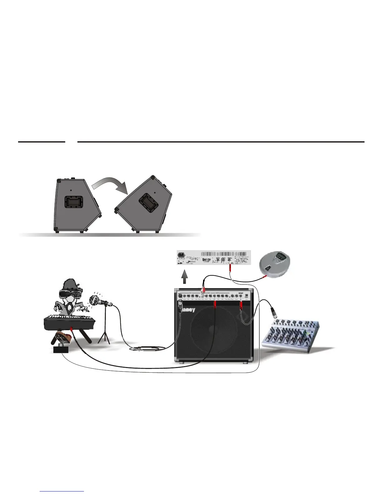 Your AH100 features a kick style design to enable you to use it as a stage monitor, or a conventional straight combo.