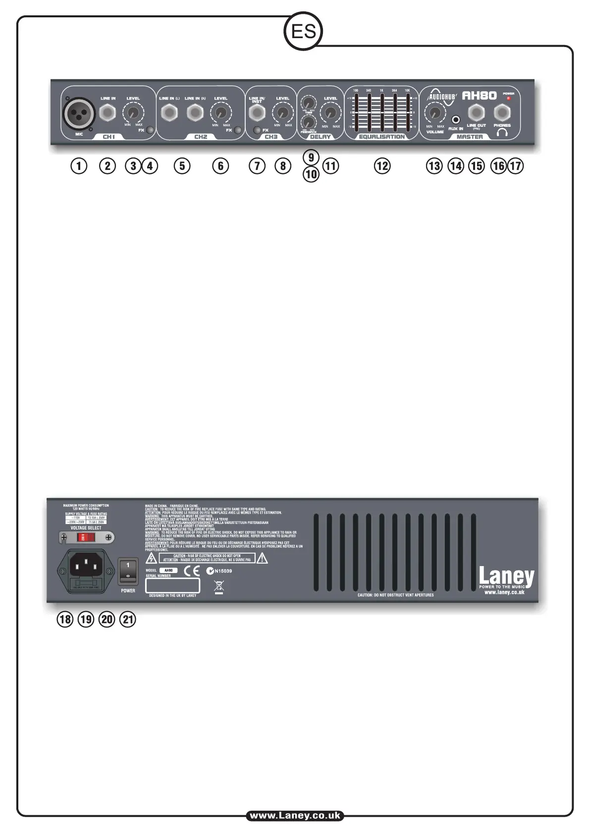 18. INTERRUPTOR DE SELECCIÓN DE VOLTAJE Esto se ajusta en fábrica a la tensión correcta para la región donde el producto se suministra. Si es necesario se puede