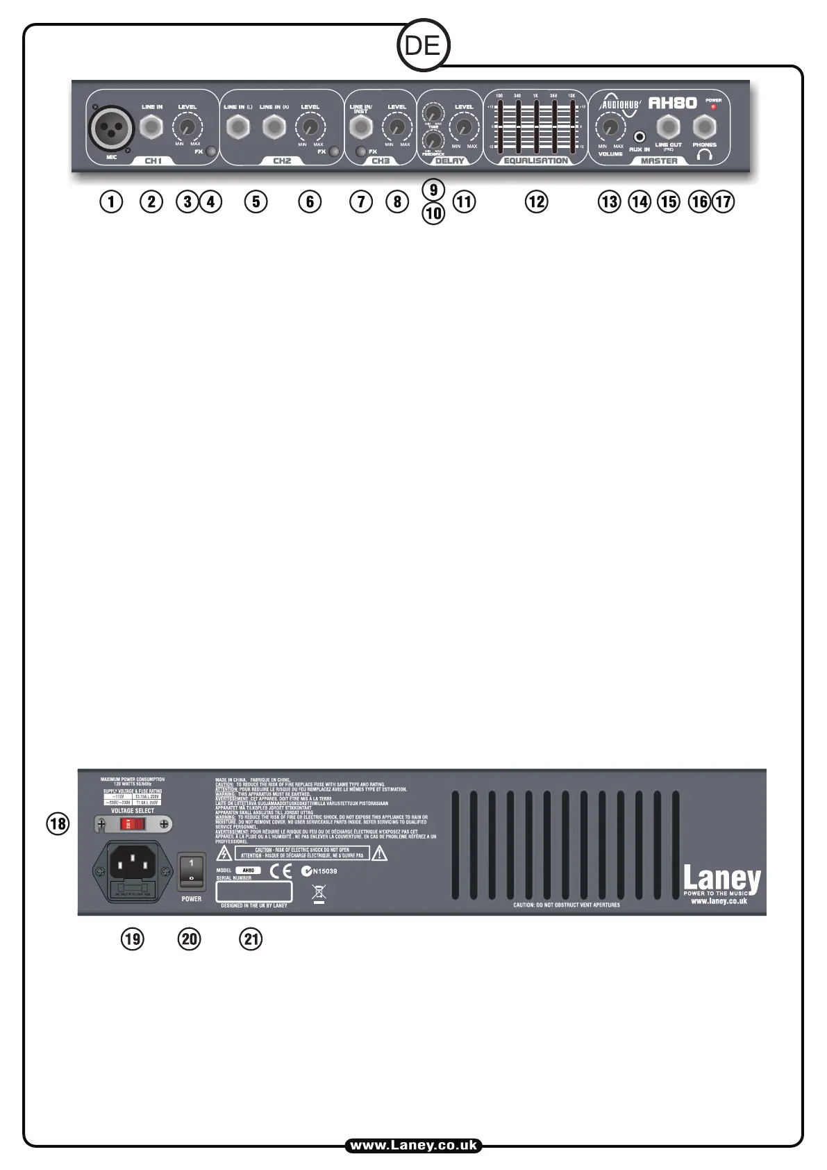 18. VOLTAGE SELECT SWITCH Diese ist ab Fabrik ist auf die richtige Spannung für das Land eingestellt, wohin das Produkt geliefert wird. Bei Bedarf