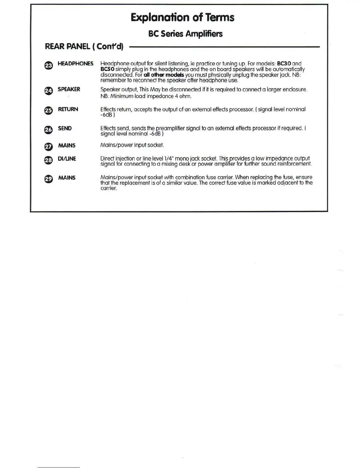 Laney BC30 - Additional Rear Panel Components