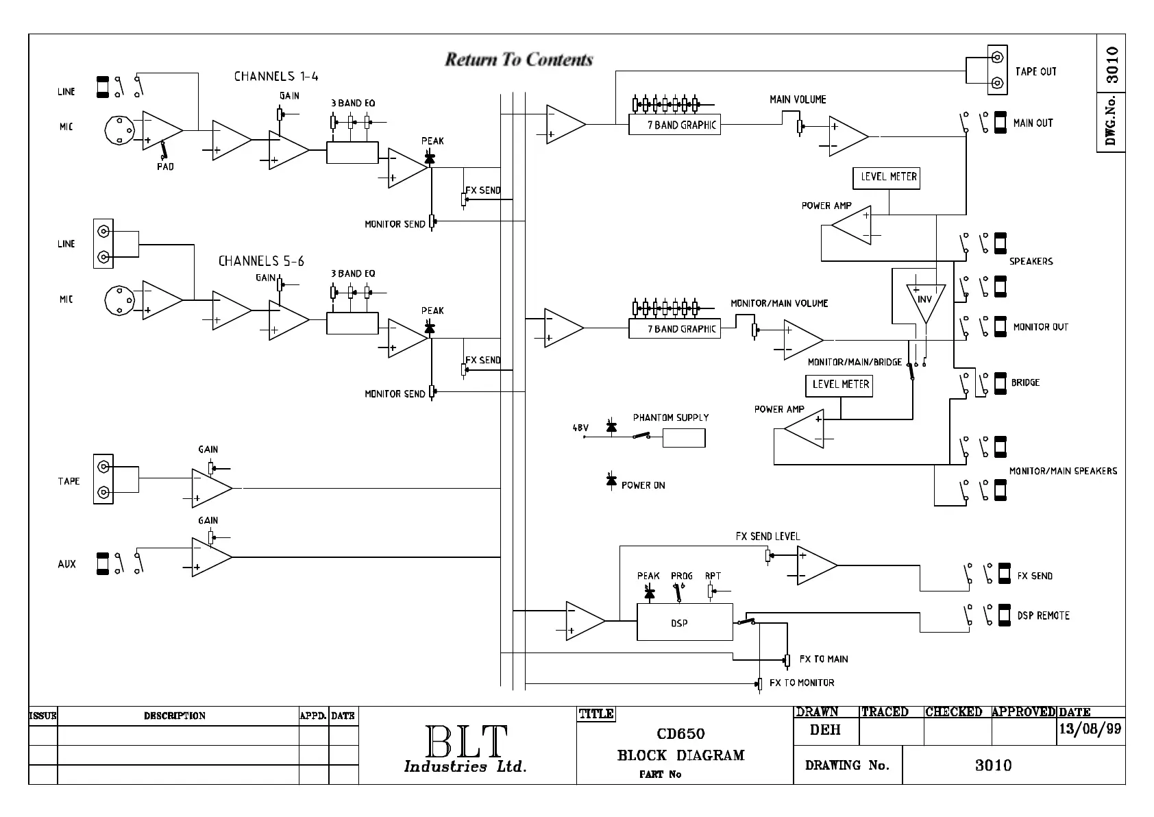 Laney CD650 - Block Diagram; Input Channels and EQ; Effects and DSP Integration; Output and Monitoring Sections
