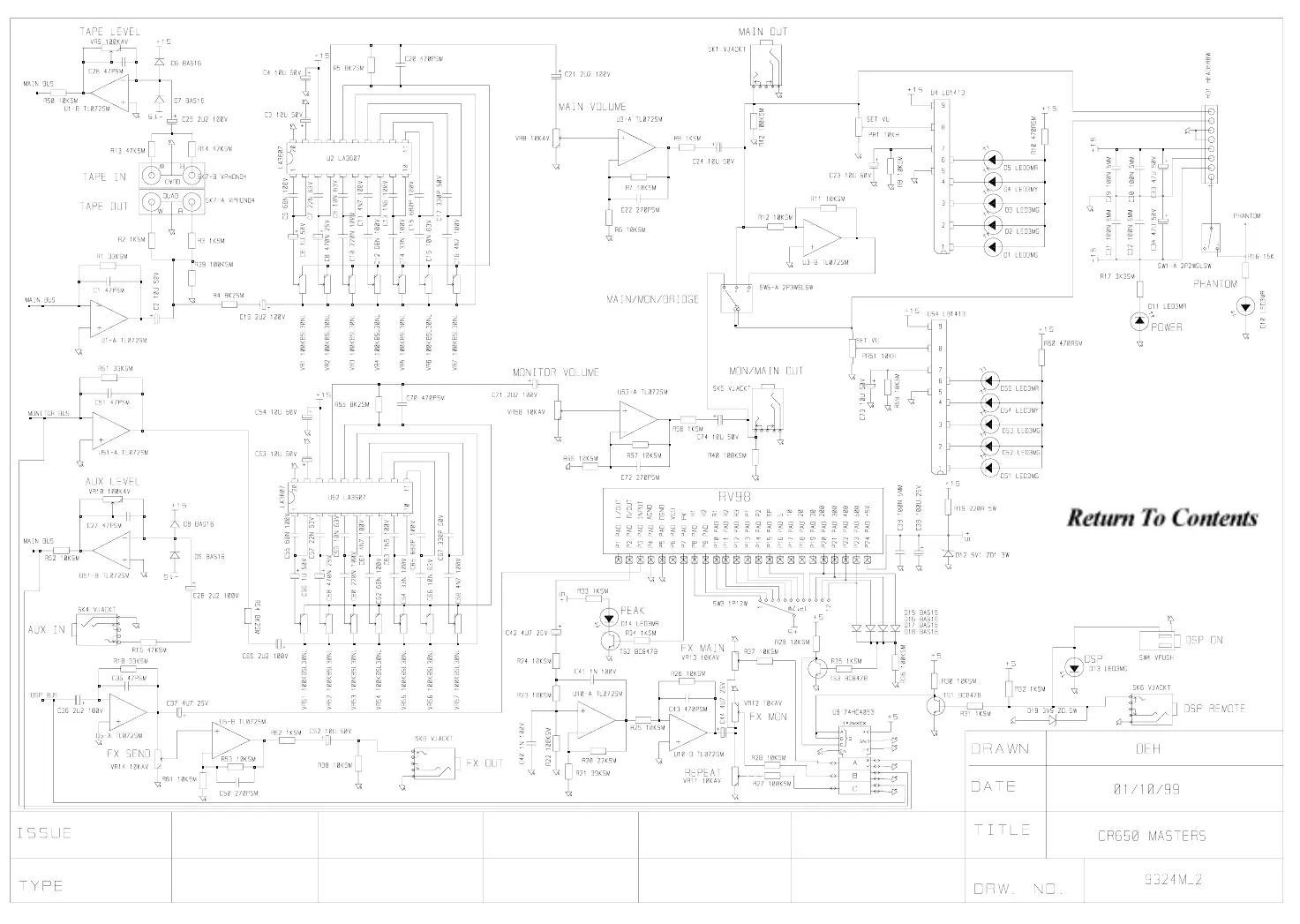 Laney CD650 - Master Section Schematics; Tape and Aux Input Processing; Main and Monitor Volume Control; FX Send and FX Out Circuits