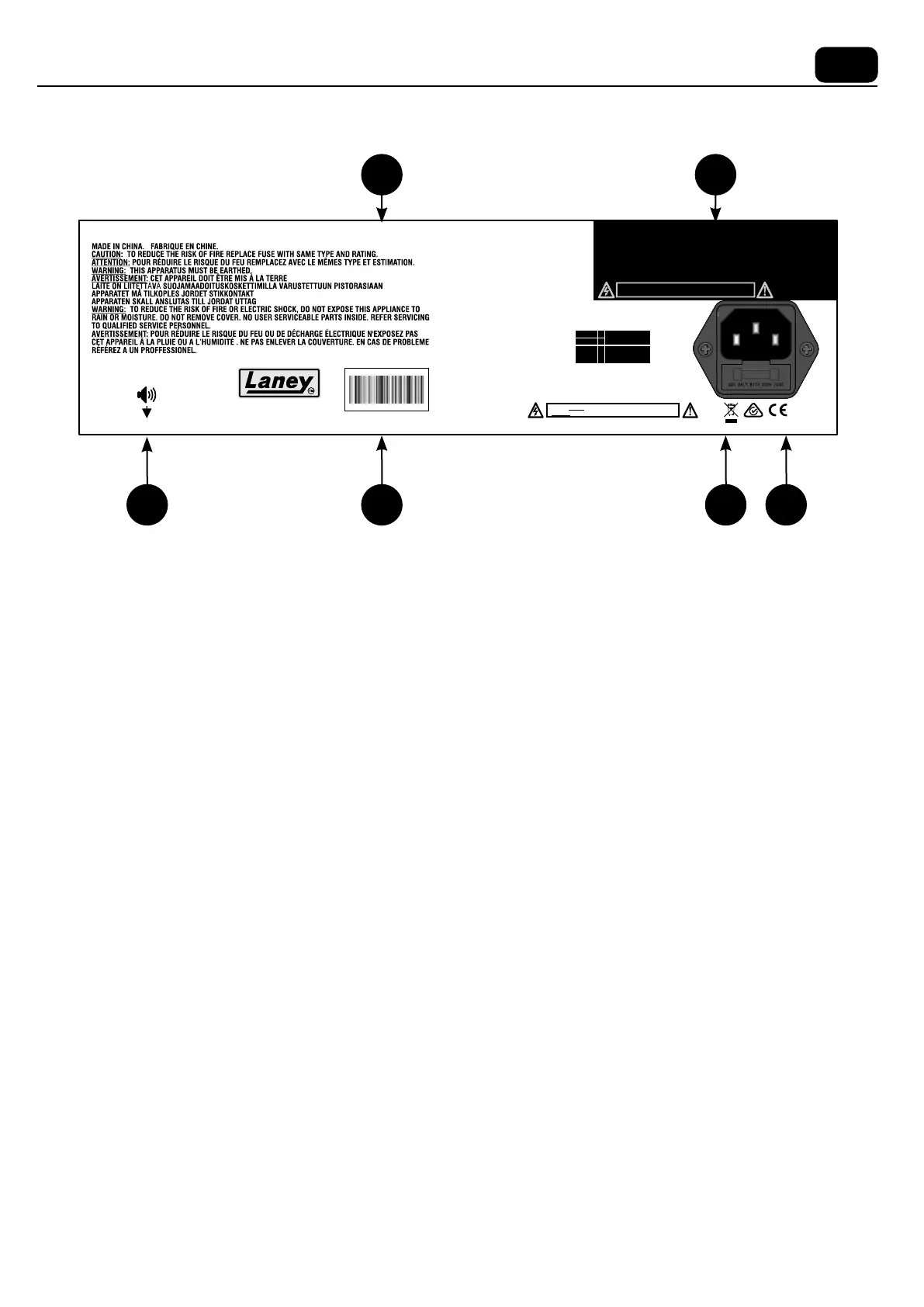 警告: 为 降低火灾 风 险使用相 同 款式和额 定值的保 险 丝来替换