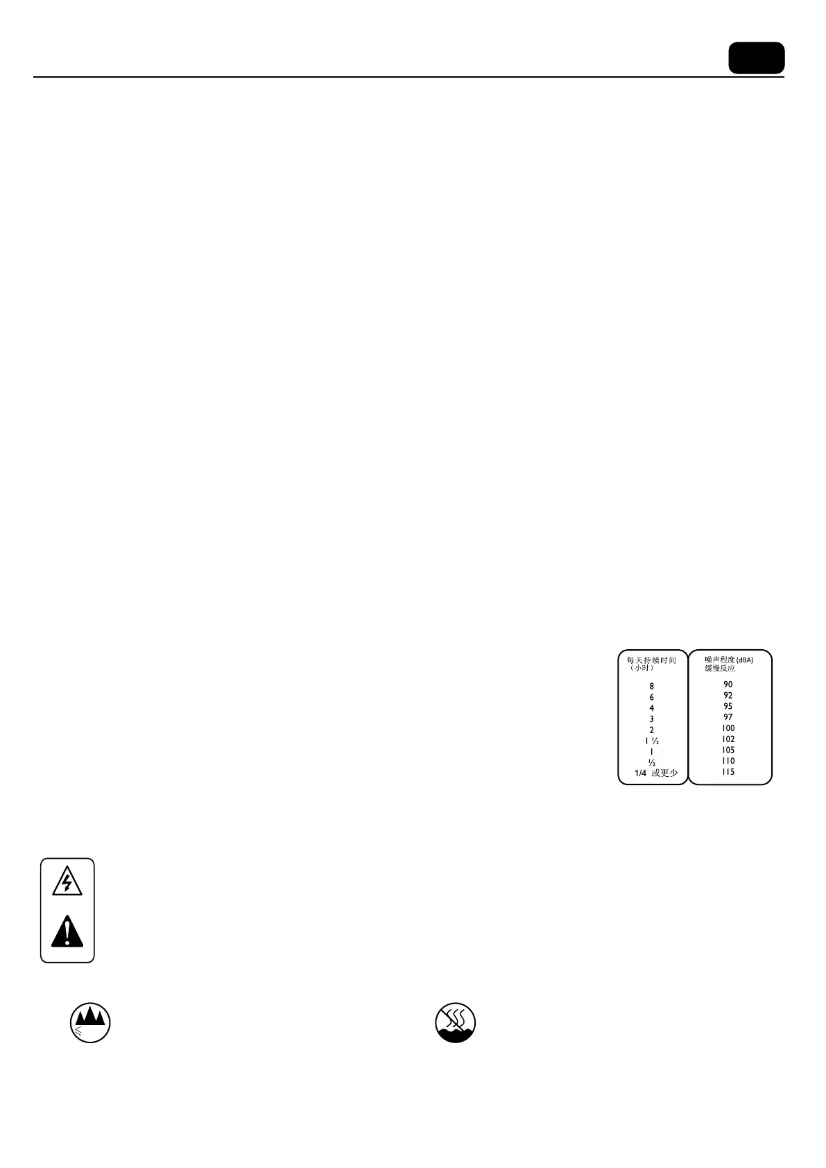 电器运行时,建议处于强声压程度下的所有人均配备听力保护装置。