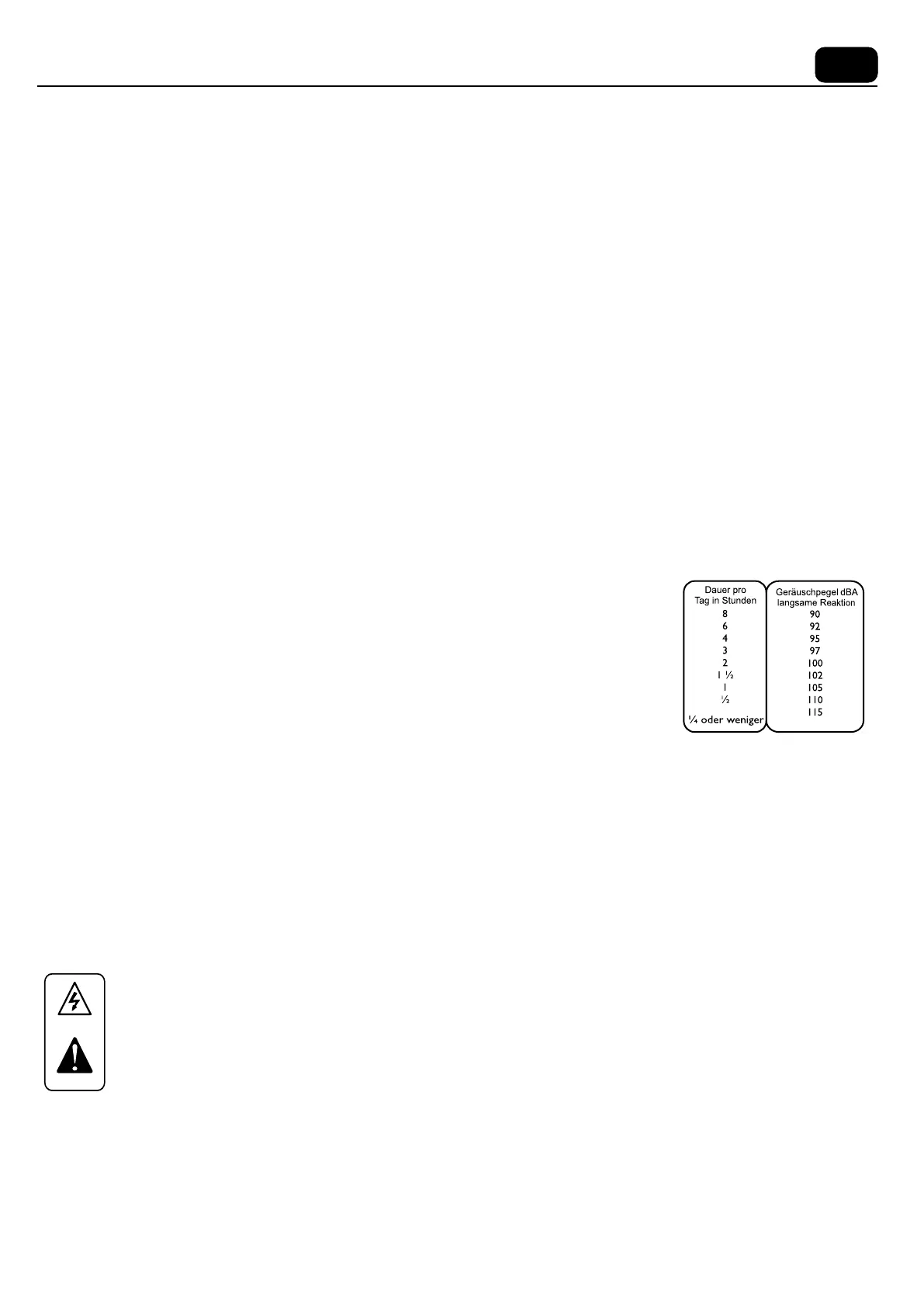 hohe Schalldruckpegel erzeugen können, beim Betrieb dieses Geräts einen Gehörschutz zu tragen.
