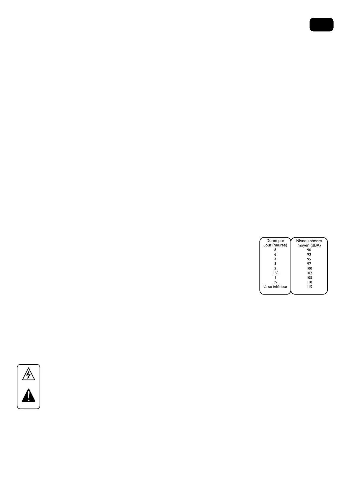 l'esposizione prolungata ai limiti riportati qui a fianco potrebbe causare perdita di udito. Tappi per le orecchie o protezioni per il condotto orecchie o sopra le