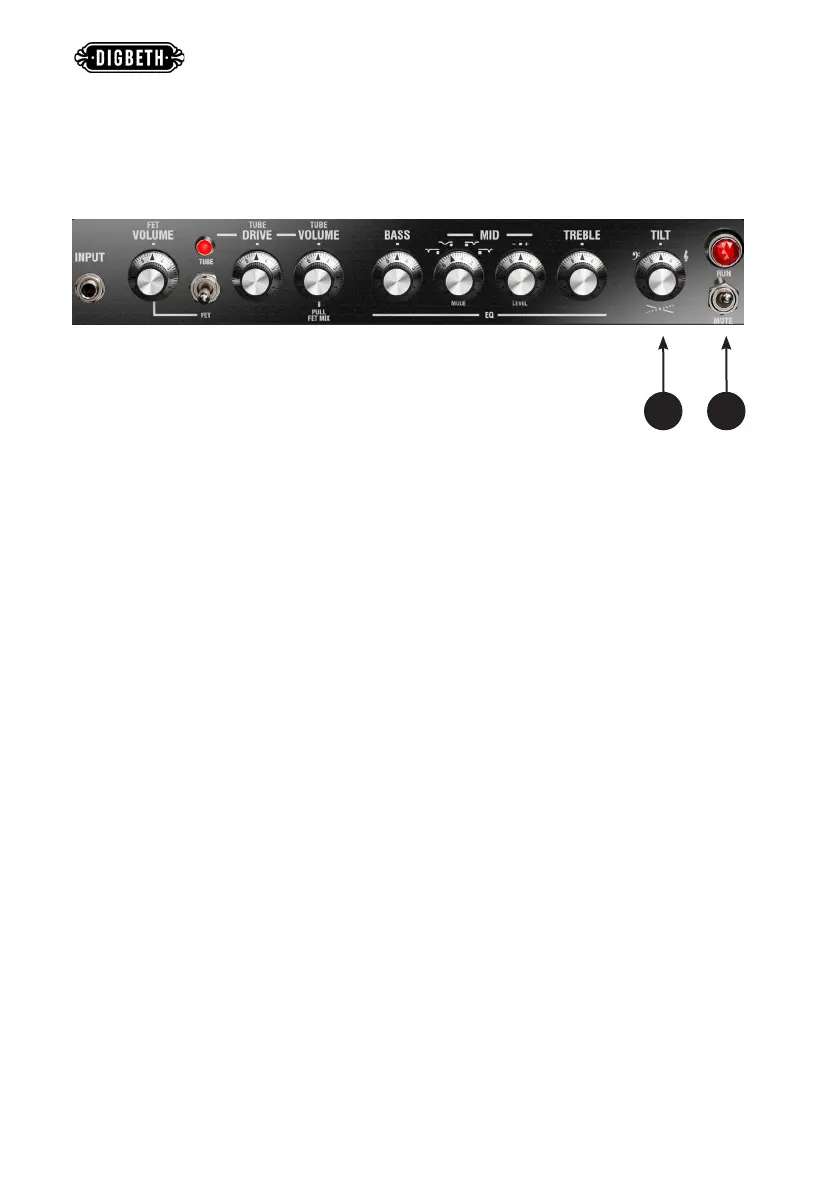 9 - TILT - Works like an overall balance control of the tone. Turning toward the TREBLE
