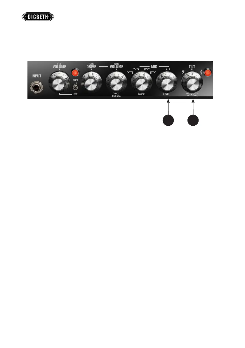 7 - TILT - Works like an overall balance control of the tone. Turning toward the TREBLE