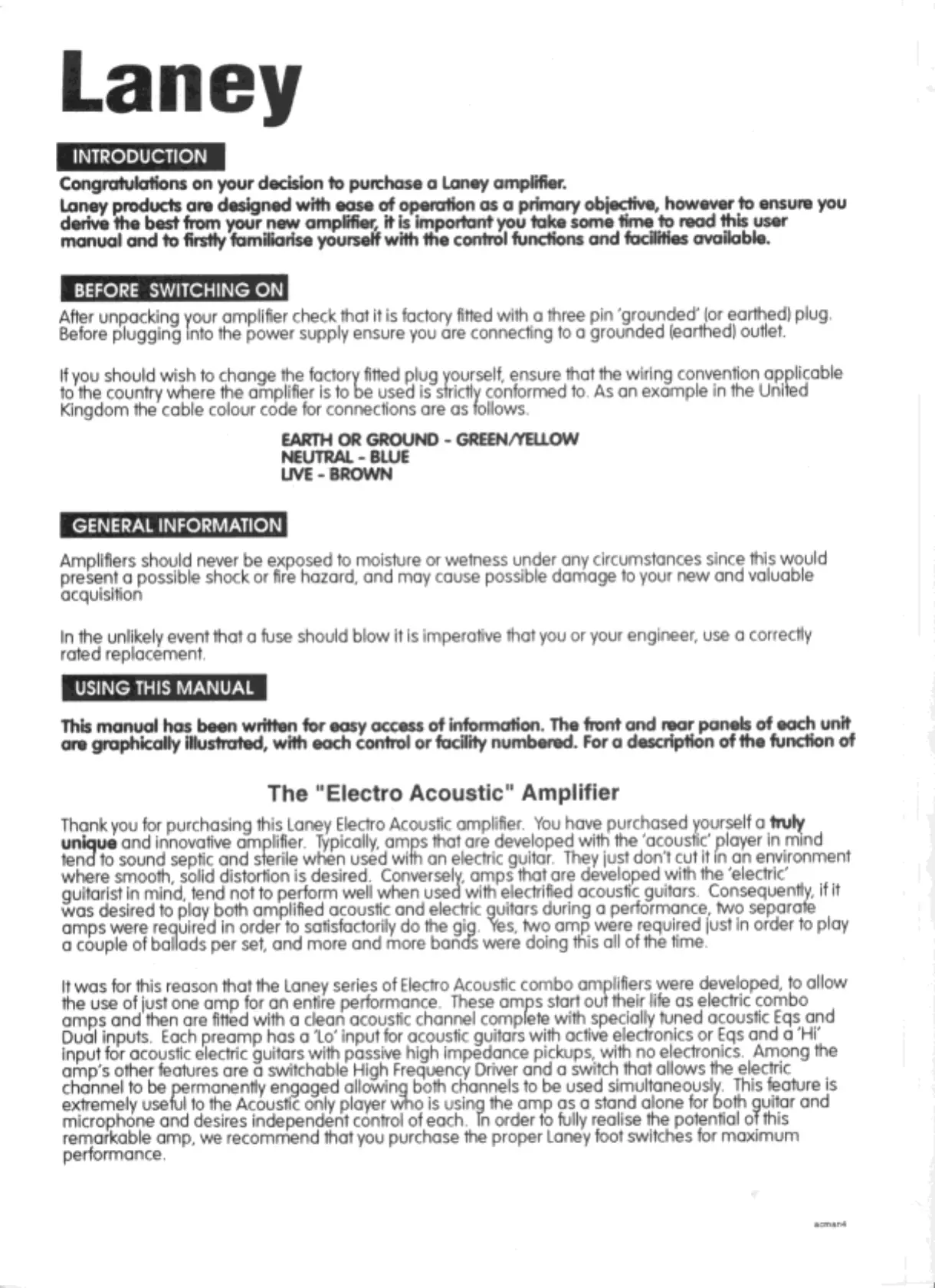 Laney GC50A - Introduction and General Information; The Electro Acoustic Amplifier Concept