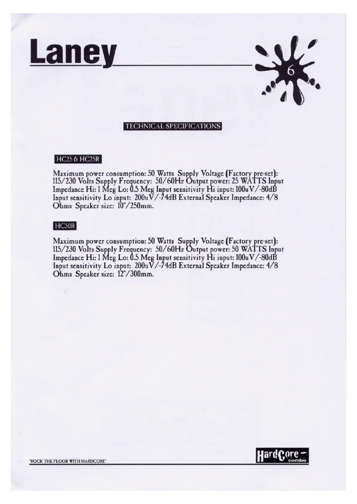 Laney Hardcore Combo HC25 - Technical Specifications